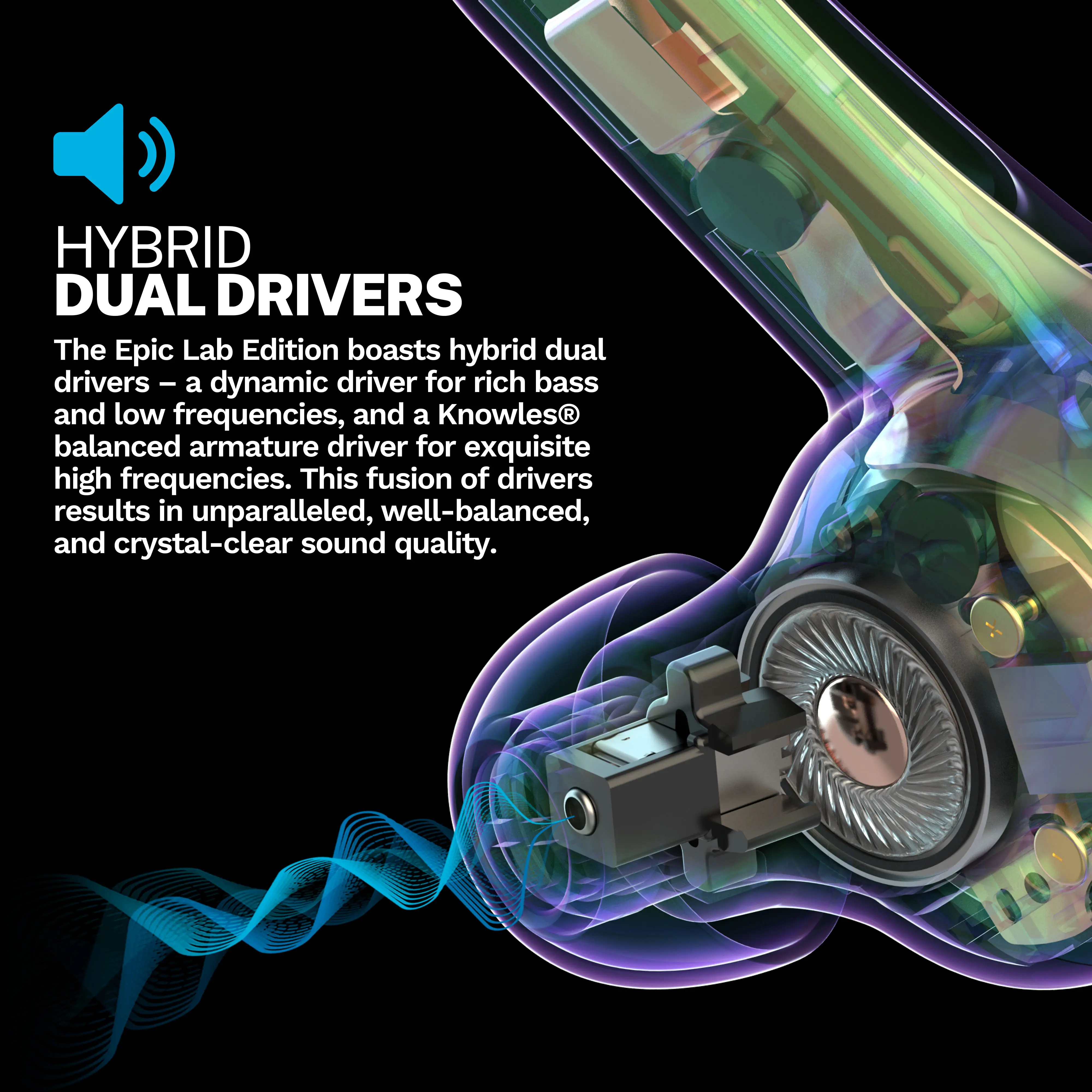 • Dual Drivers provide an audiophile listening experience.