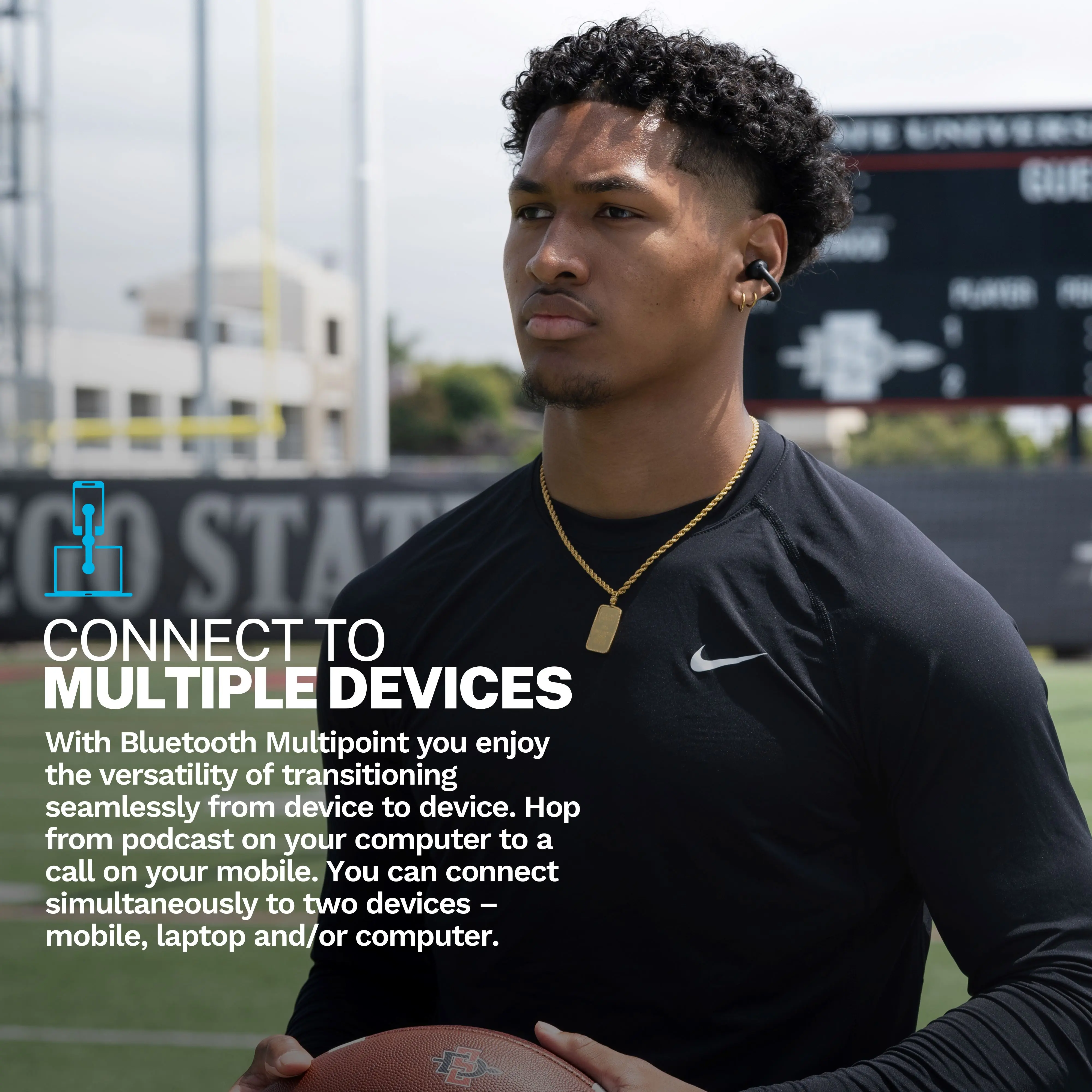 Enjoy versatility with Bluetooth Multipoint. Transition seamlessly from podcast on your computer to a call on your mobile. Connect simultaneously to two devices – mobile, laptop, and/or computer. Experience the freedom of connecting anywhere. Customize touch controls and sound with the JLab app. Customize to your personal preference or use presets for JLab Signature, Balance, or Bass Boost.