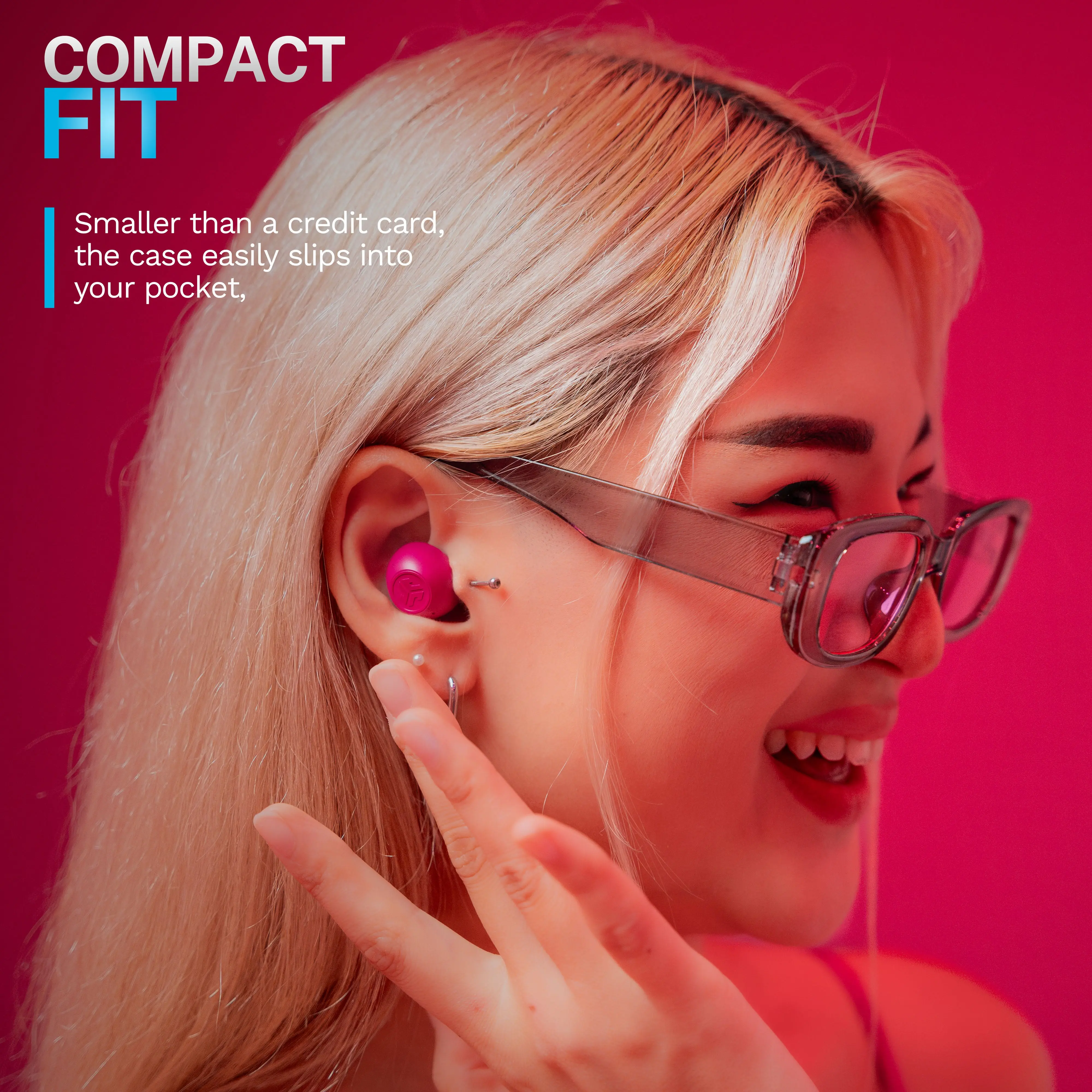 JLab offers a two-year warranty. The earbuds and case are IP55 sweat and splashproof. Weighing 8.2g and 22g respectively, they fit comfortably. Dimensions: earbuds 0.8 x 0.68 x 0.87 inch, case 2.2 x 1 x 1.6 inch. Get the JLab GO POP ANC today!
