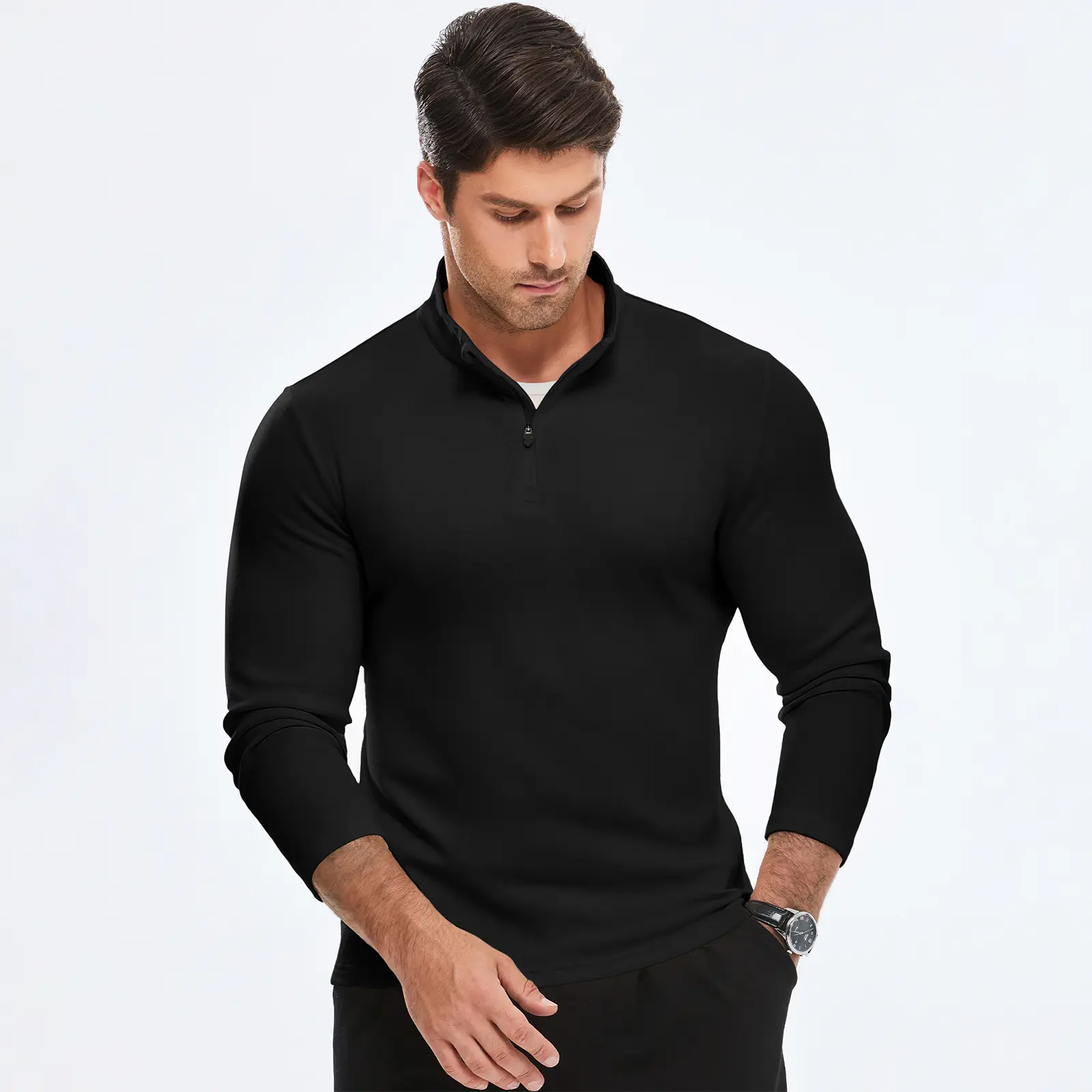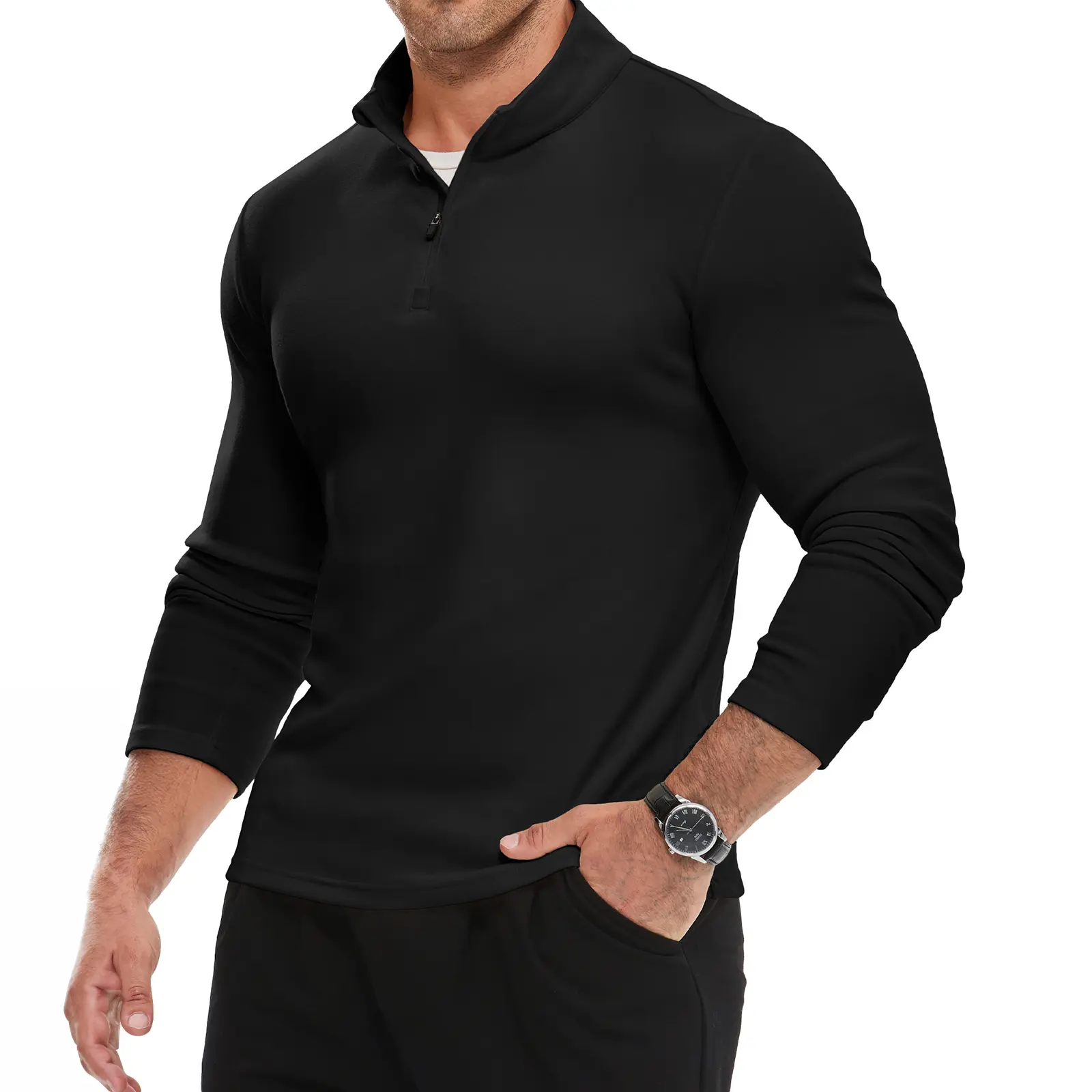 Quarter-Zip Pullover - The classic 1/4 zipper of polo sweatshirt allows for easy on and off, adding a unique touch of personality and functionality to the overall design. Designed with a chin guard to ensure comfortable wearing.