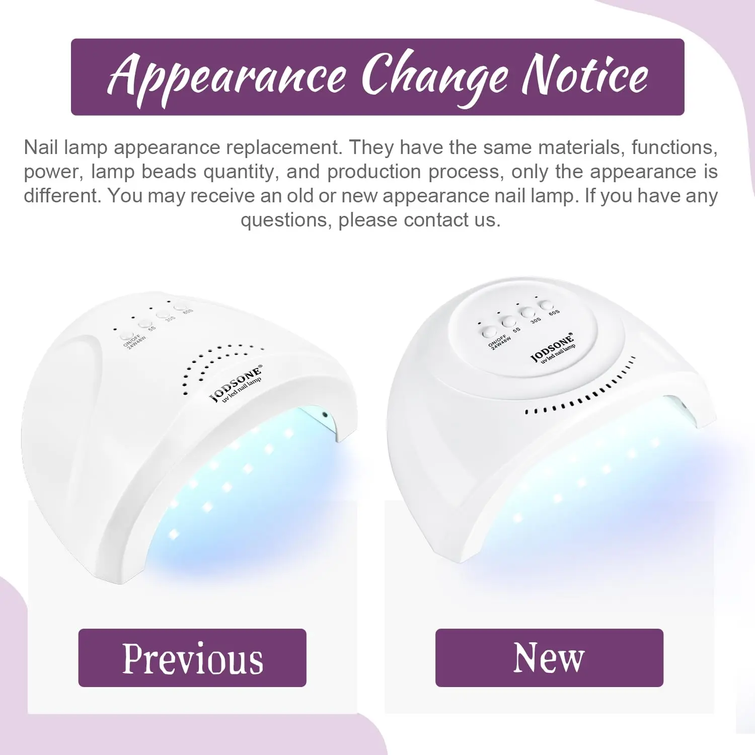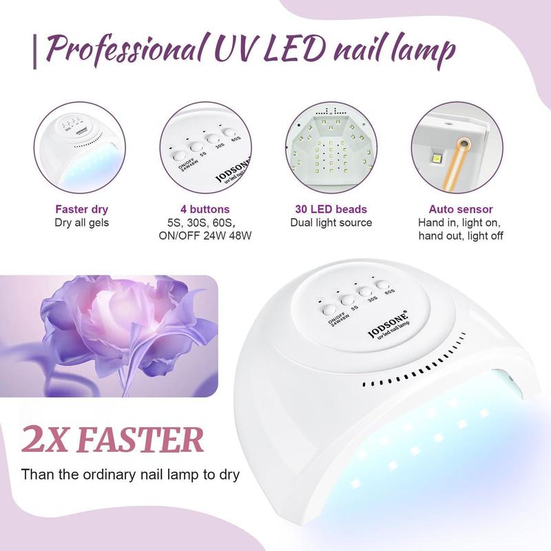 Nail Lamp: This nail lamp has 3 curing modes, 5s, 30s, 60s, one minute to cure gel nail polish. And it contains 30 led small light beads and can cure each nail in all directions. Smart nail lamp, hand in, the light is on; hand out, the light is off.