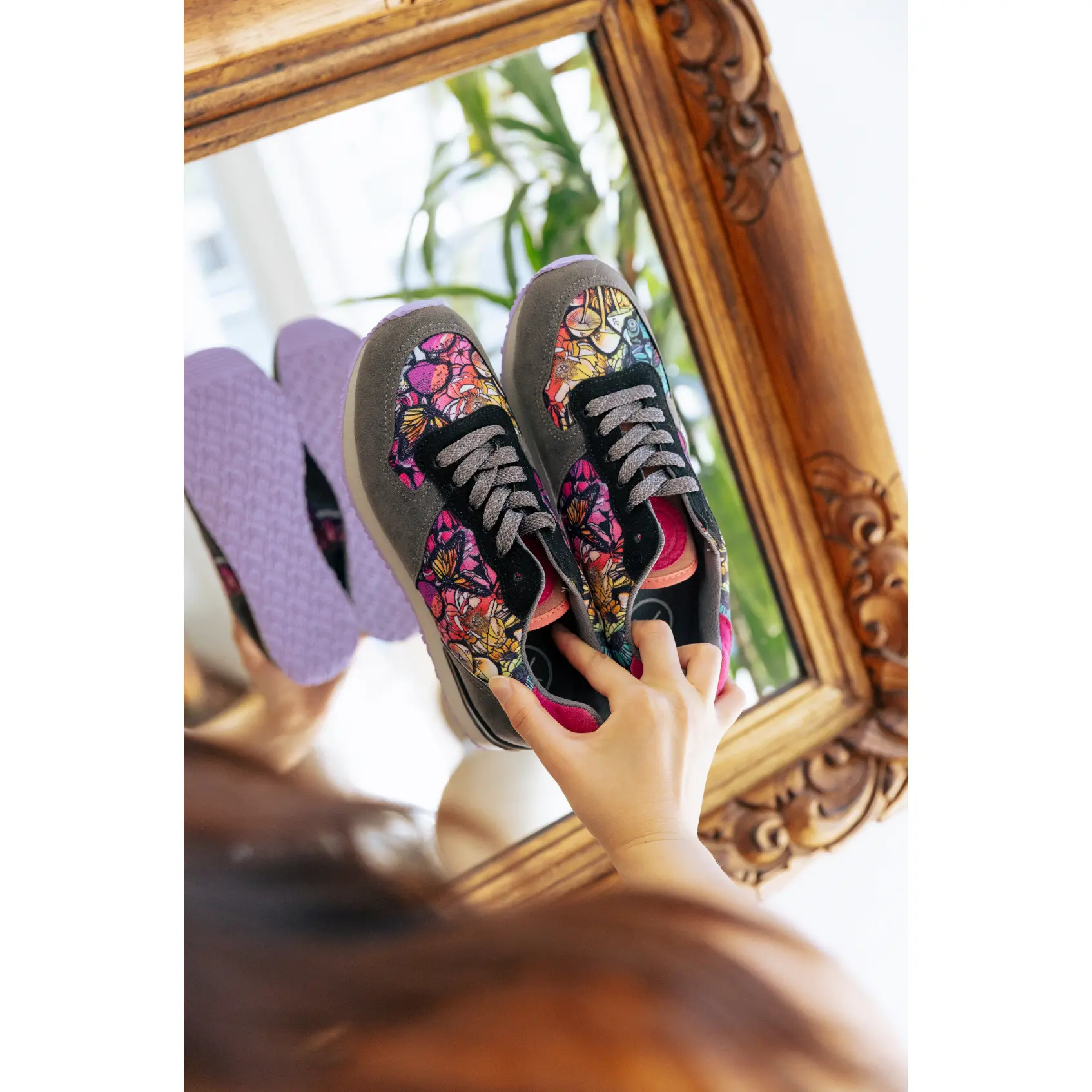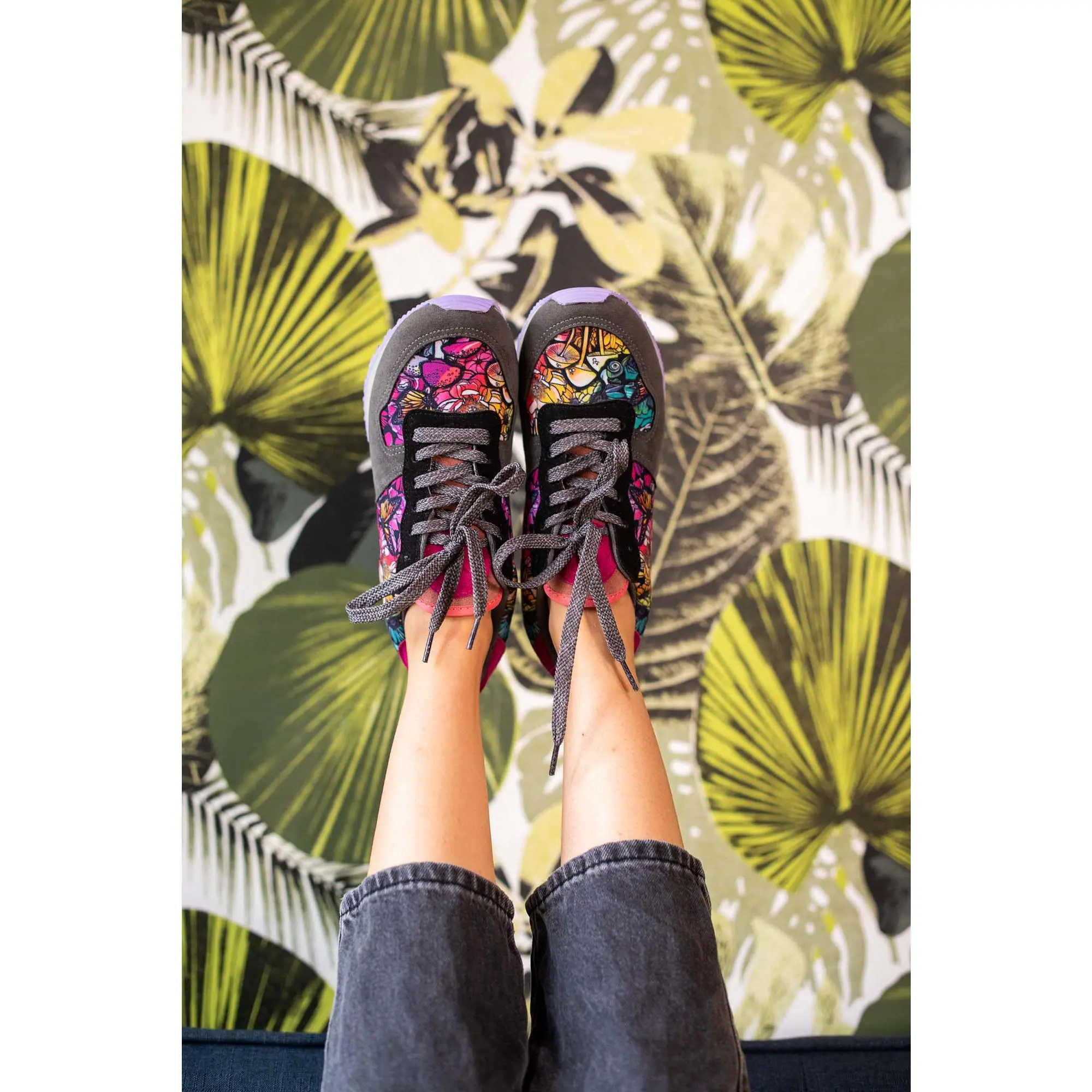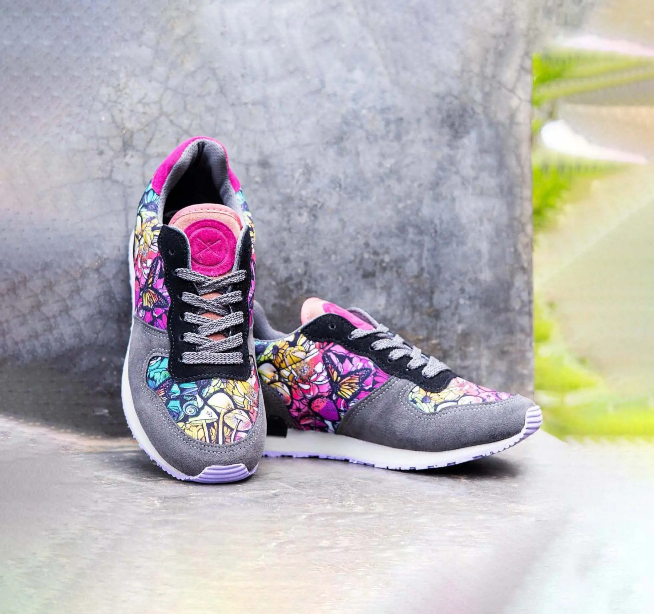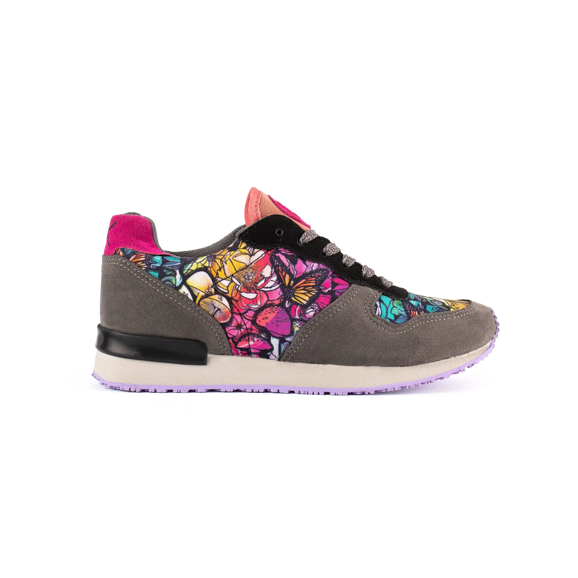 This design gets its name from the golden chanterelle mushroom, infamously difficult to cultivate, mostly grown in the wild, and highly-prized for its unique flavor and aroma, making them a favorite among chefs and food enthusiasts. Featuring vivid colors of the fungi in the mushroom forests of Colorado, this design is irresistibly one-of-a-kind. Complimented by shades of black and gray, and a premium Vegan suede, you'll want to grab your pair before this small batch collection sells out!