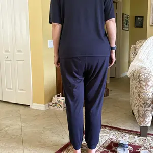 This set is super comfortable and lightweight. The blue is not the darker/almost turquoise blue in the listing. It's more of a royal blue(?). A lot bluer than I thought and wanted. I've had a lot of compliments on the outfit, but the blue is not for me. I thrifted it to my sister.