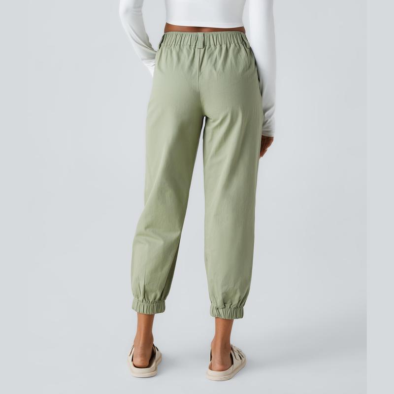 Halara Mid Rise Button Zipper Side Pocket Casual Cotton Joggers