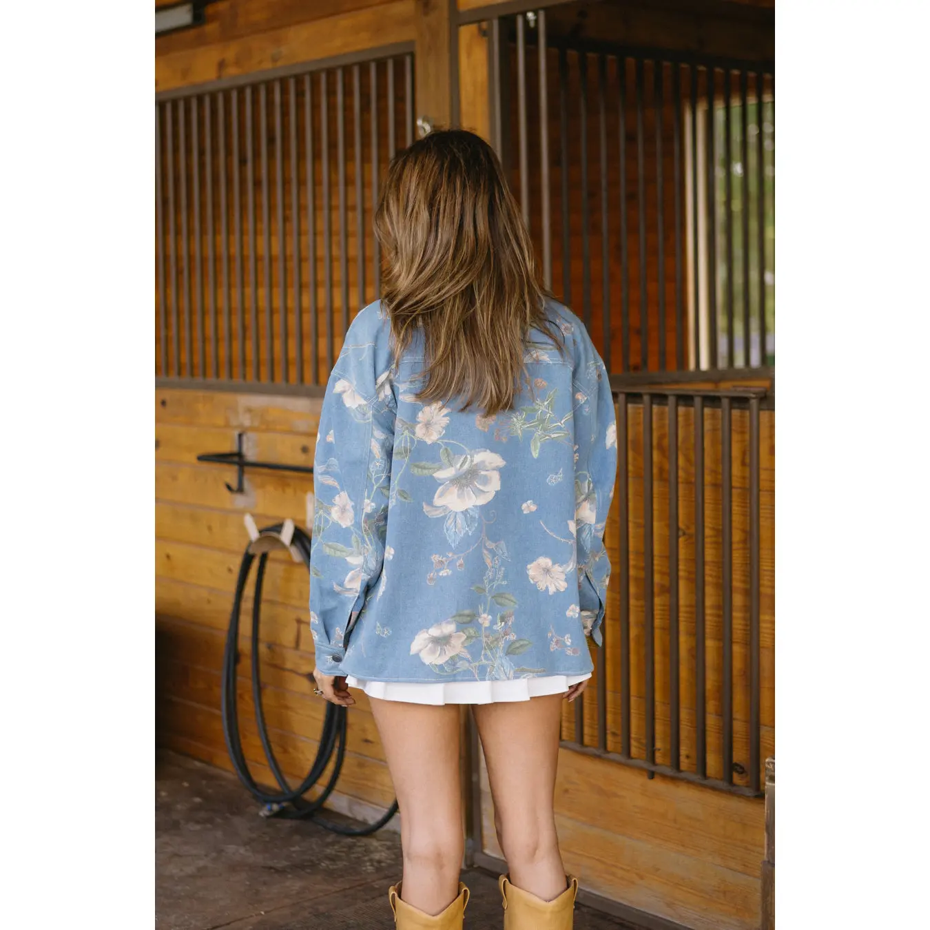 ·Floral print denim jacket