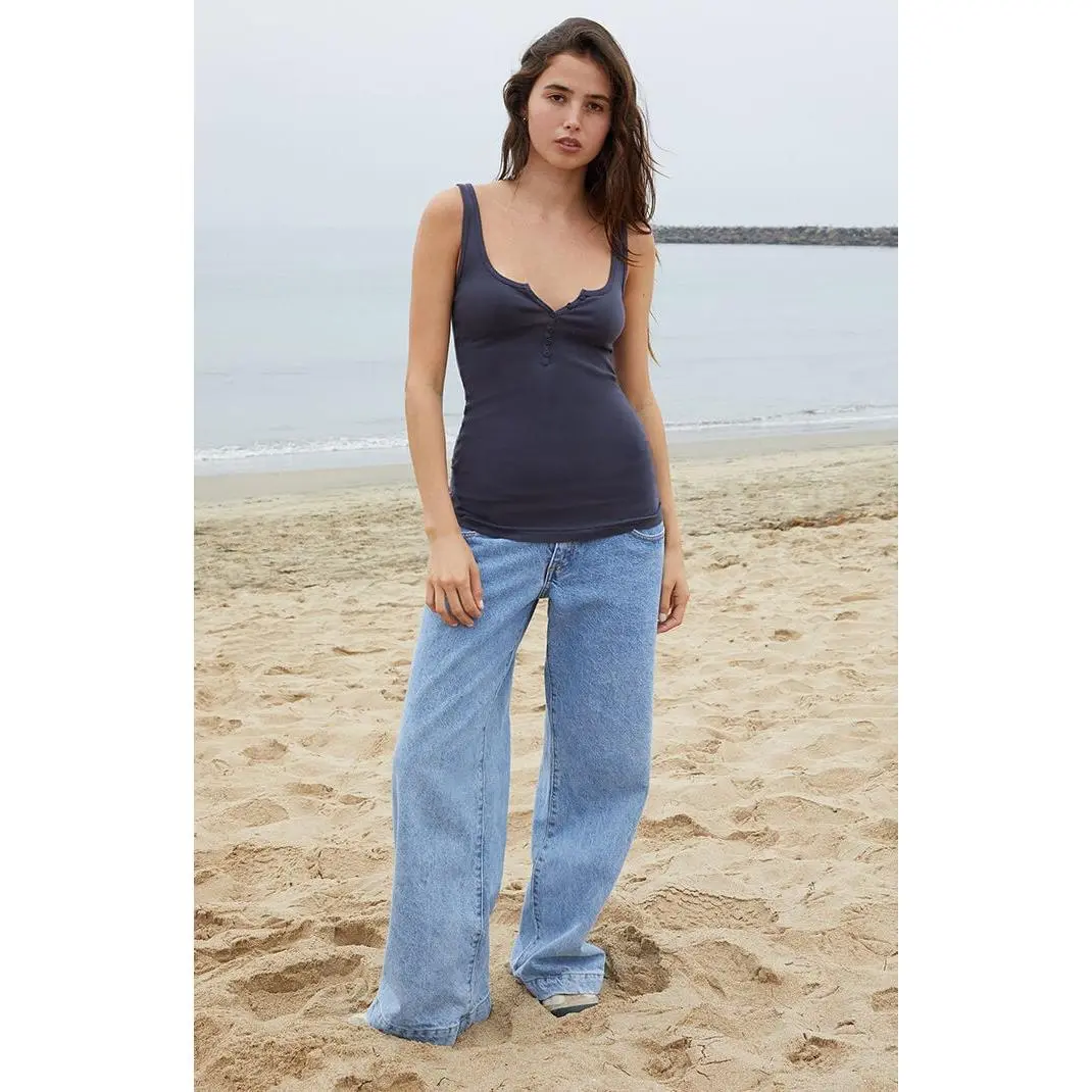 The Blue Beyonca Button Tank Top from John Galt is a timeless staple with a casual-cute twist. It features a scoop neckline, fixed straps, a button front placket, and a slim fit that’s perfect for layering or wearing solo.