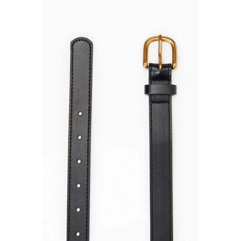 John Galt Women's Faux Leather Black Gold Buckle Belt