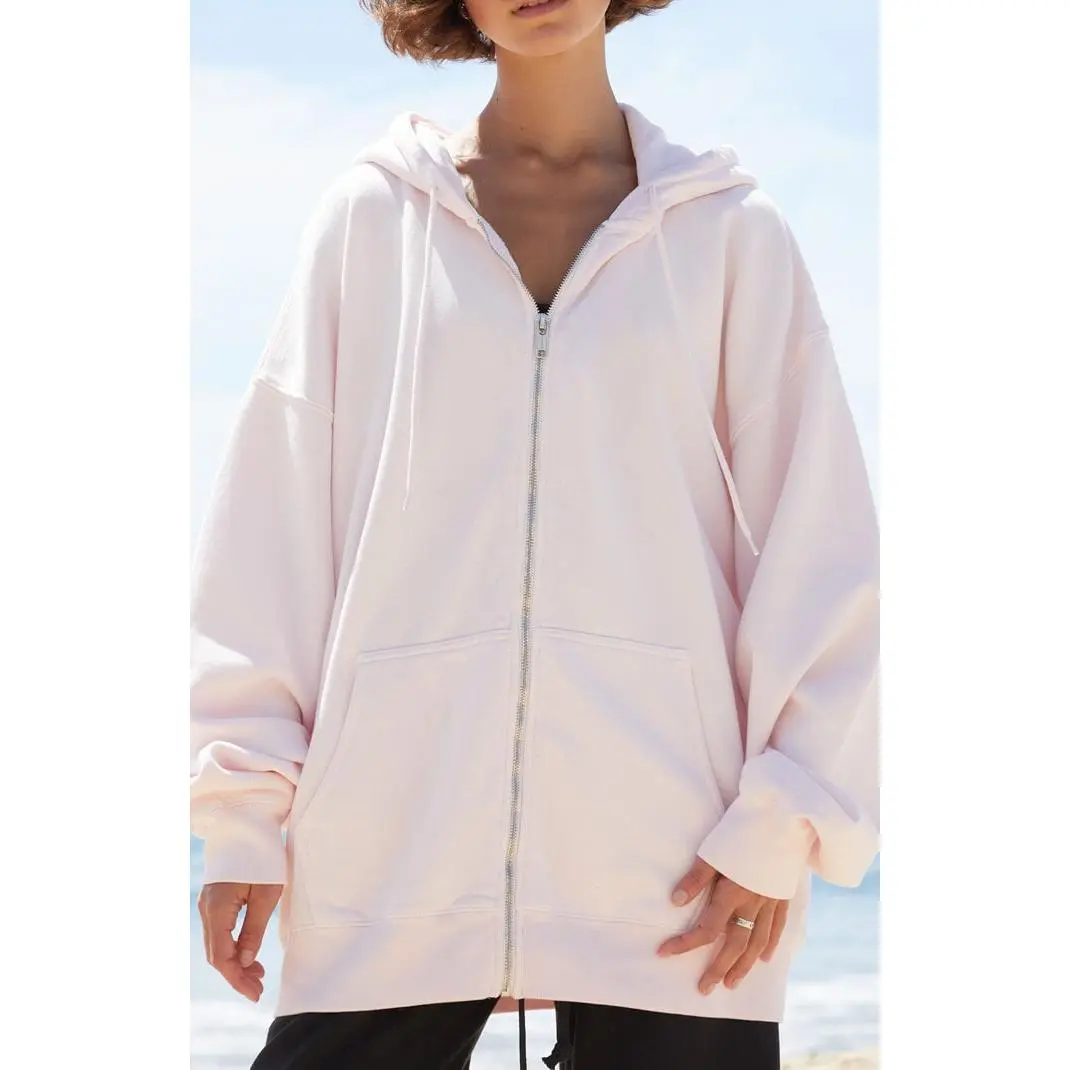 John Galt Women's Pink Christy Full Zip Oversized Hoodie