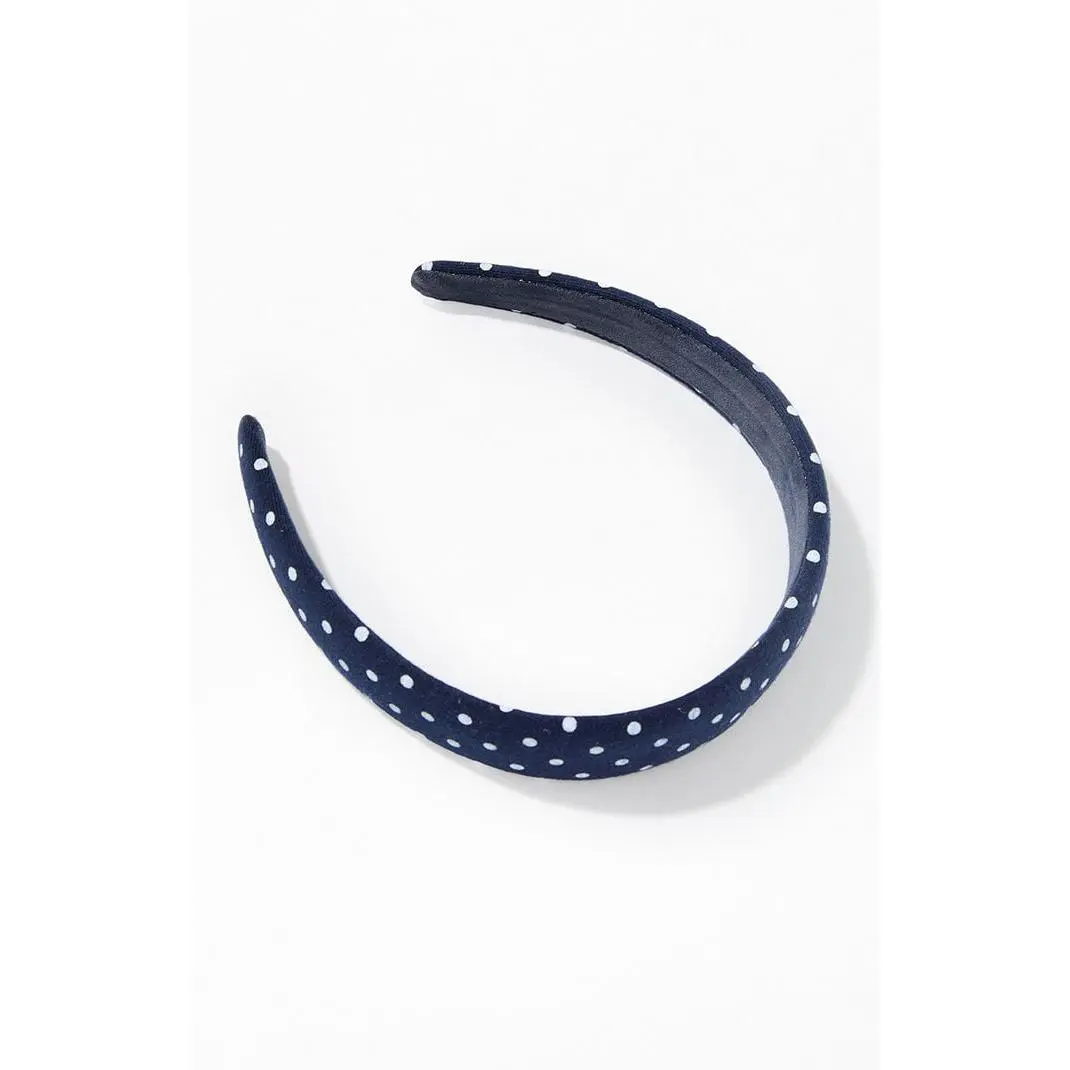 The Polka Dot Headband from John Galt adds a playful, retro-inspired touch to your everyday look. Designed with a classic navy base and white polka dots, this easy-to-wear accessory keeps your hair in place while keeping your style effortlessly cute.