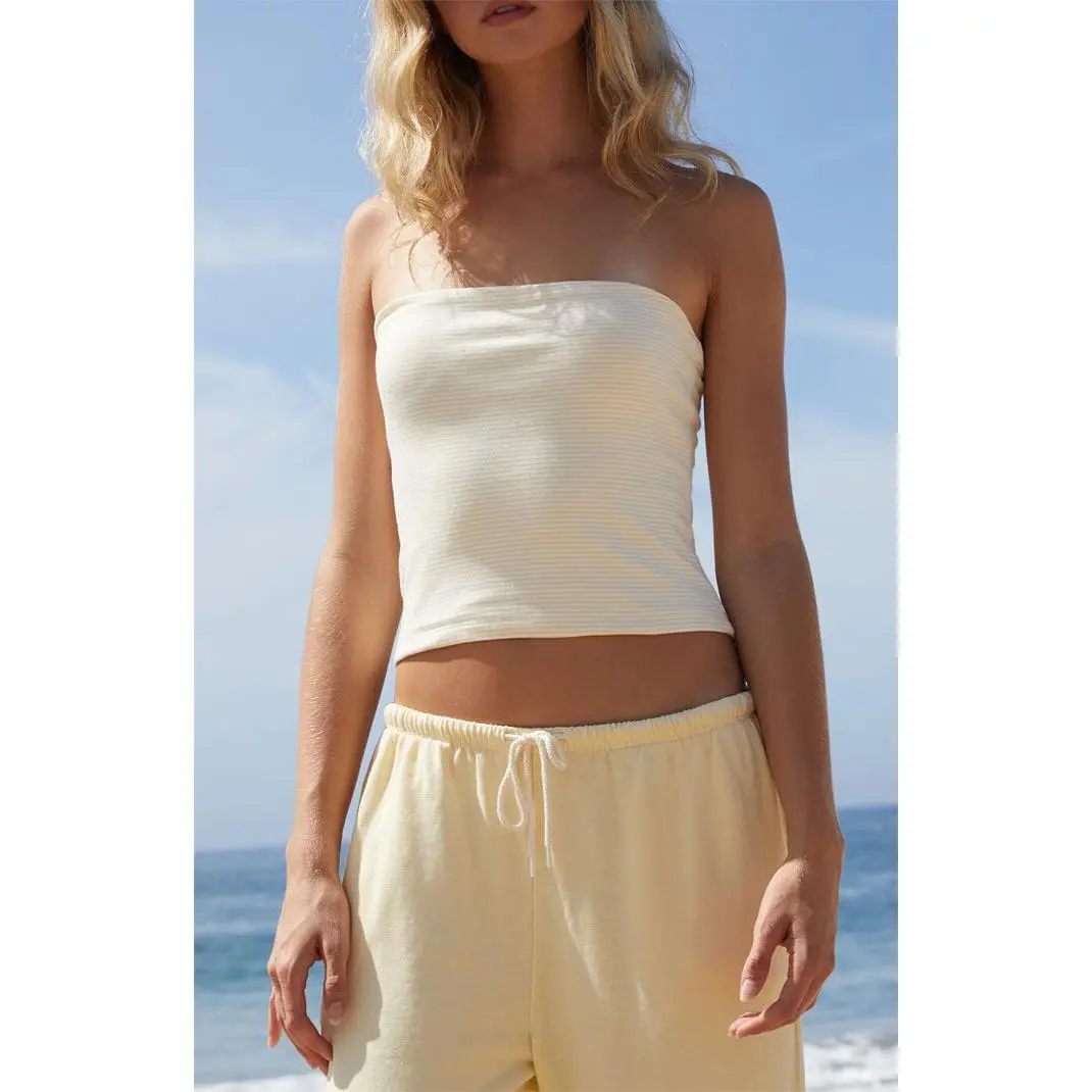 John Galt Women's Yellow Amelia Striped Cropped Tube Top