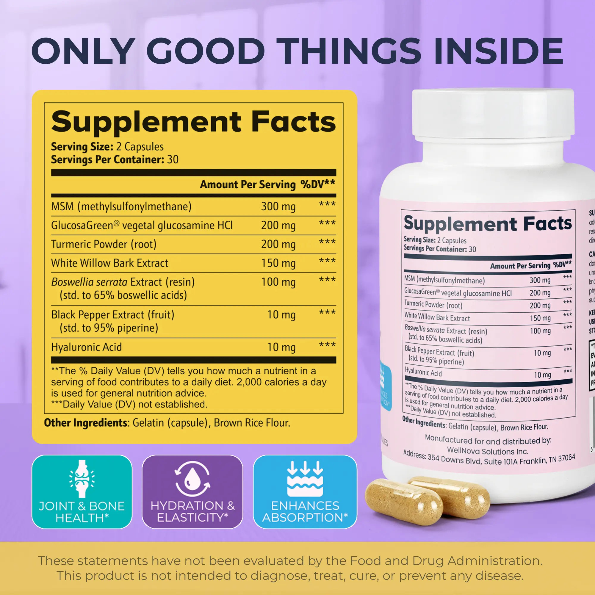This supplement offers vital nutrients to support joint health. It includes MSM, GlucosaGreen® vegetal glucosamine HCl, Turmeric Powder, and Boswellia serrata Extract. These ingredients promote joint flexibility, reduce discomfort, and enhance overall function. Perfect for daily use, it focuses on natural components without artificial additives.