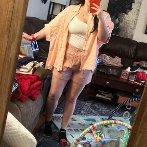 I was super nervous to do a front tuck with high-waisted shorts, but I got so many compliments on this outfit! The shirt is so soft, good quality, and light and breezy for summer! I’m 5’6, around 180 lbs, and got LXL.