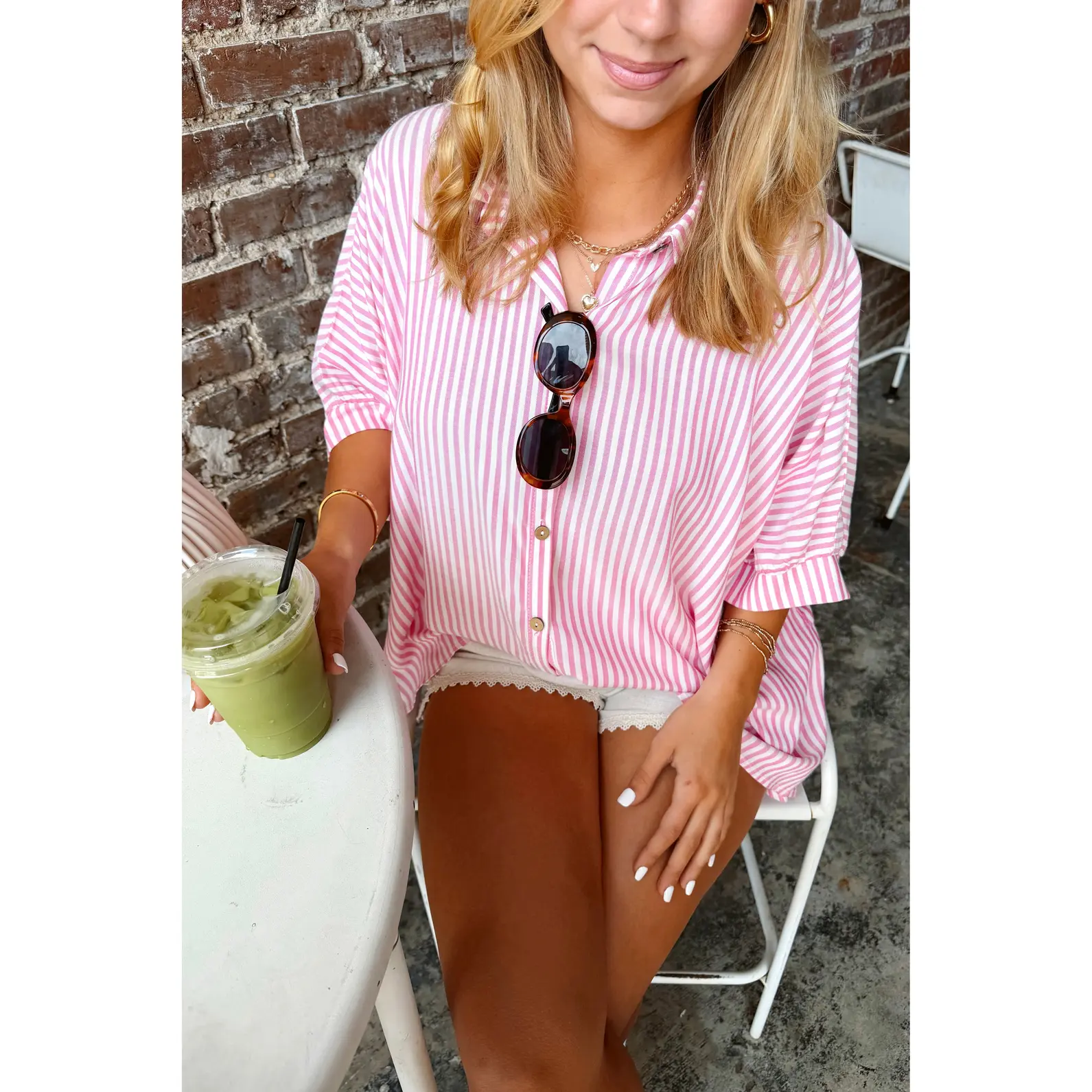 This top is the perfect casual top that makes a super cute outfit. It is the perfect oversized fit.