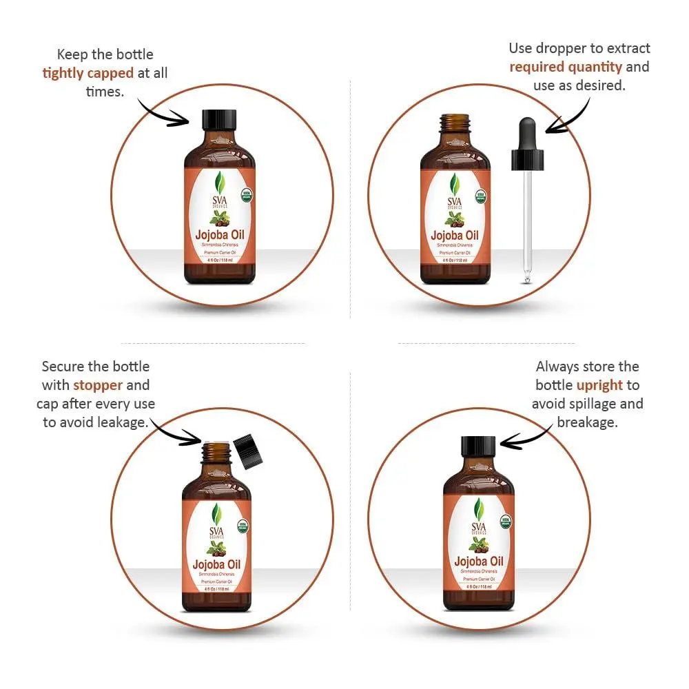 ·DIY Creations: Add a few drops to your creams, lotions, or bath products for goodness of SVA Jojoba seed oil. The oil is suitable for regular use in your skincare routine. Jojoba seed oil can also be used for making beauty products and cosmetics like body butter, body lotions, body oils, soaps, and more.