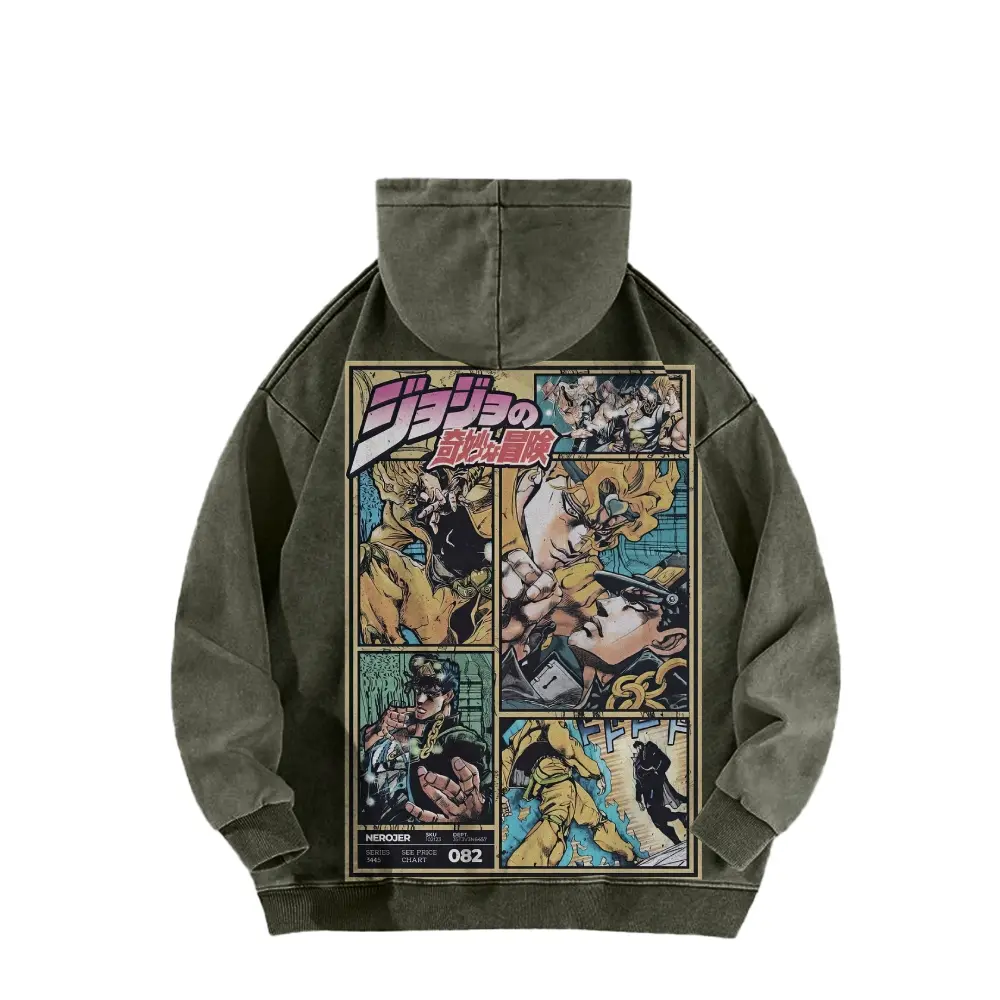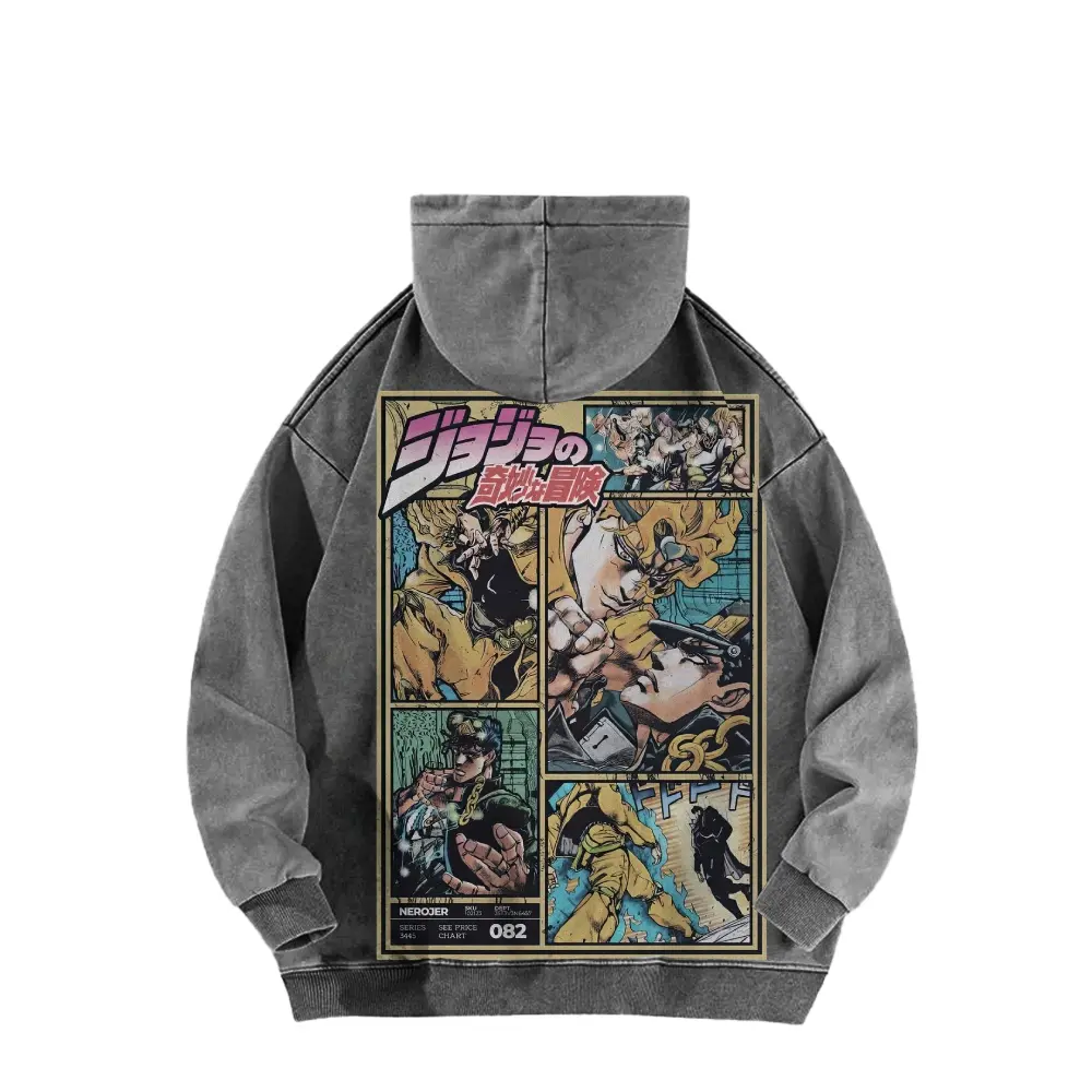 5. *JoJo's Bizarre Adventure *Acid Wash Cotton Anime Fashion Hoodie, Long Sleeve-Long Sleeve Cotton Unisex Vintage Hoodie