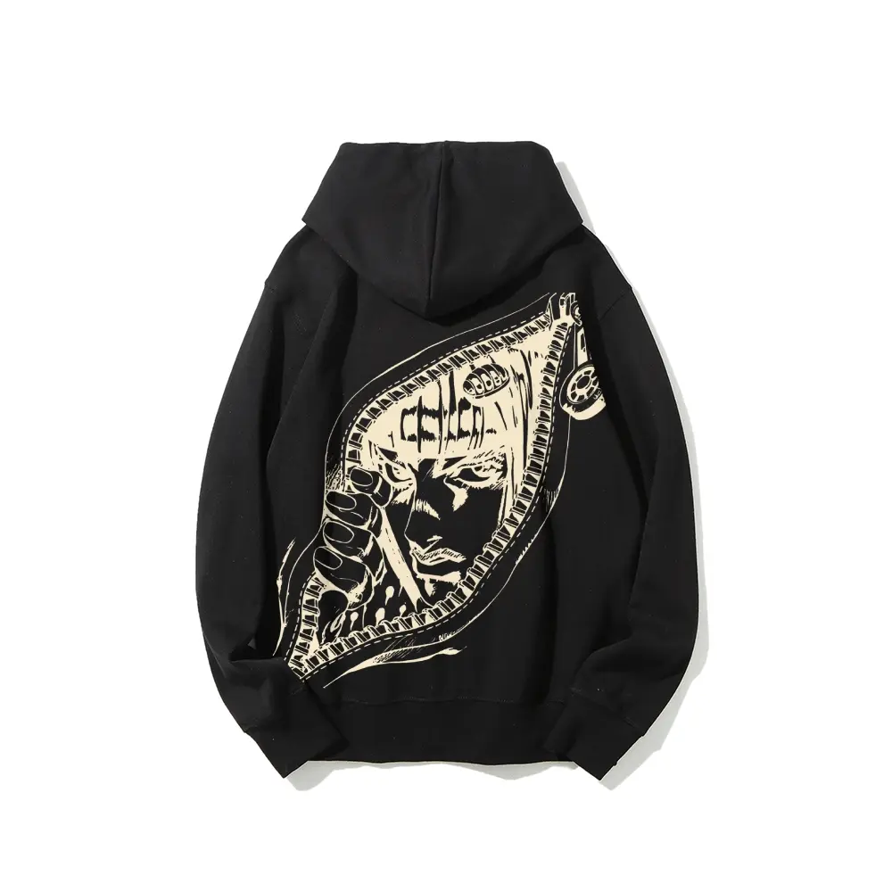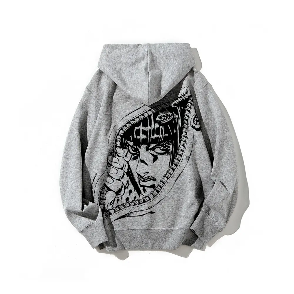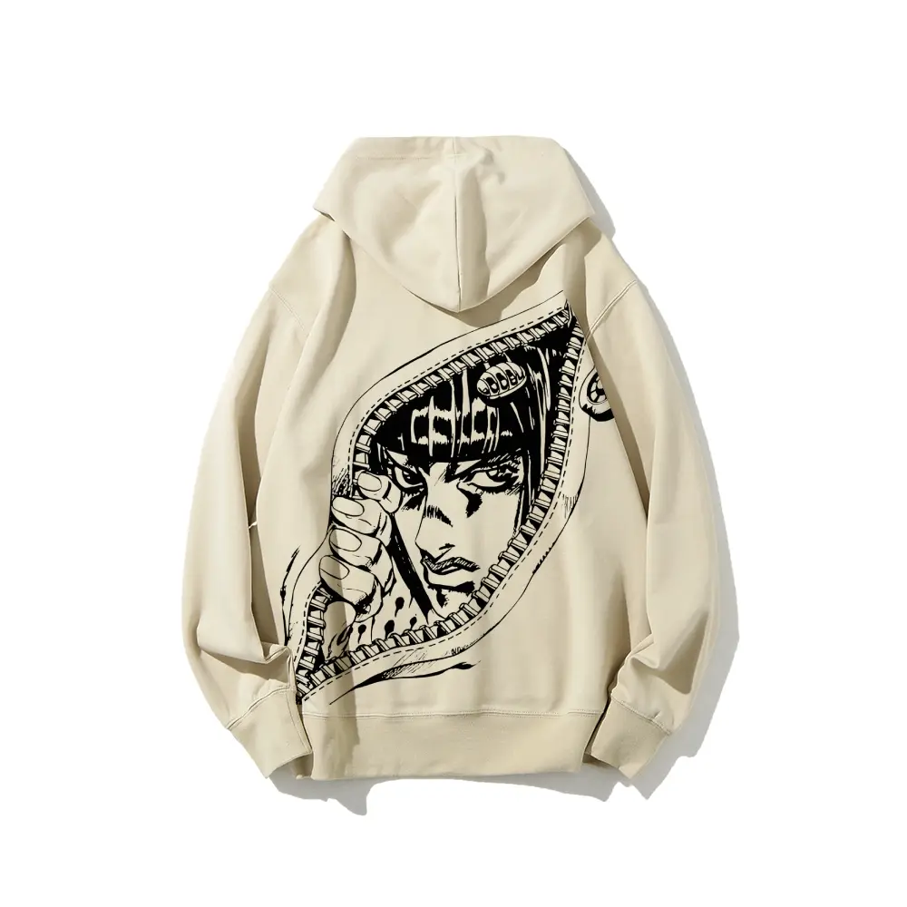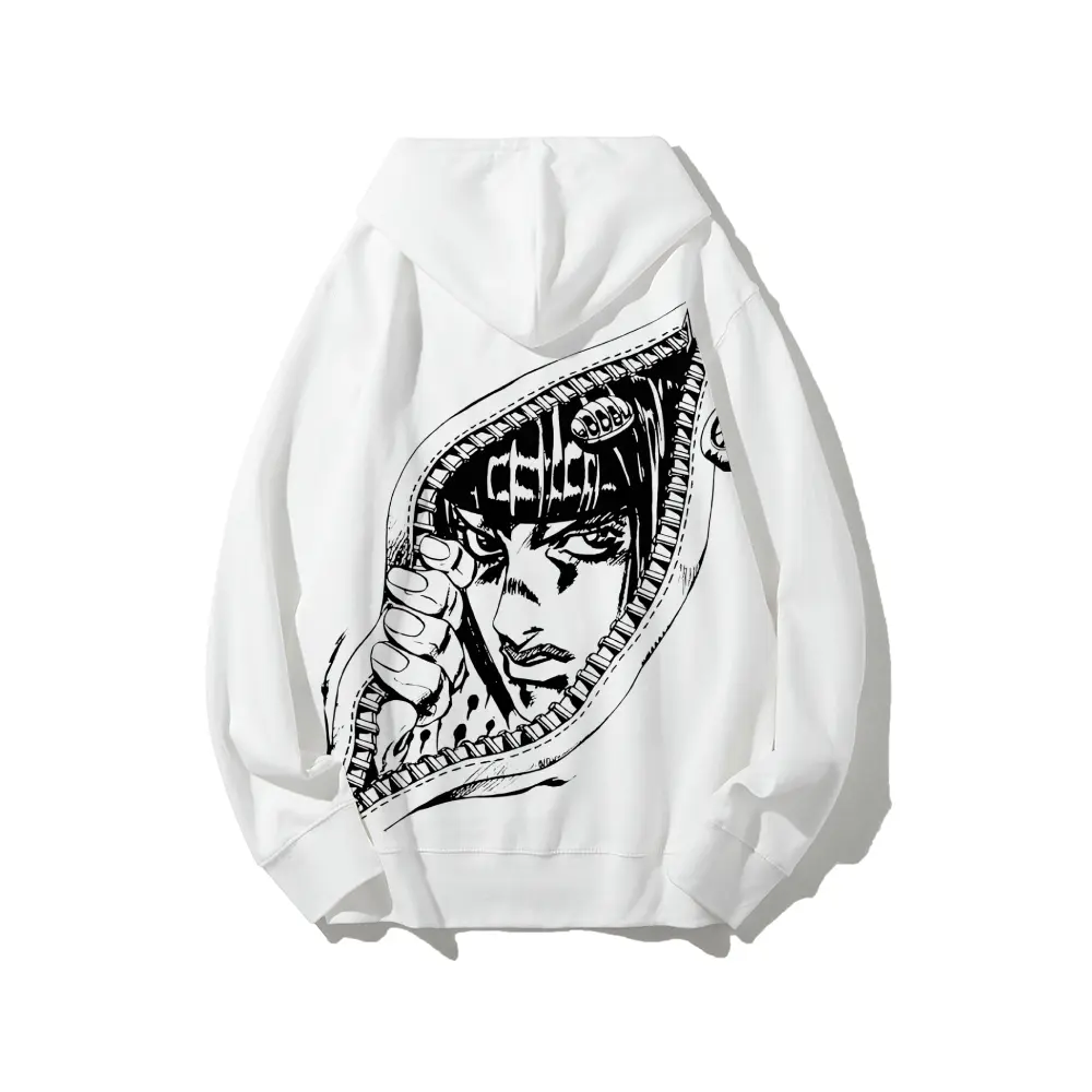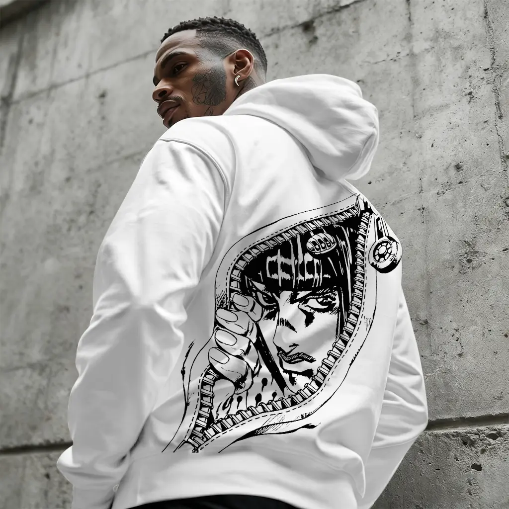 5. JoJo's Bizarre Adventure Bruno Bucciarati Sticky finger Retro-Inspired Hoodie Men's Cotton Blend Classic Anime Design Long-Sleeved Pullover Casual Style Line Drawing Print Menswear Sweatshirts Tops Operator Unisex Fashionable Crewneck