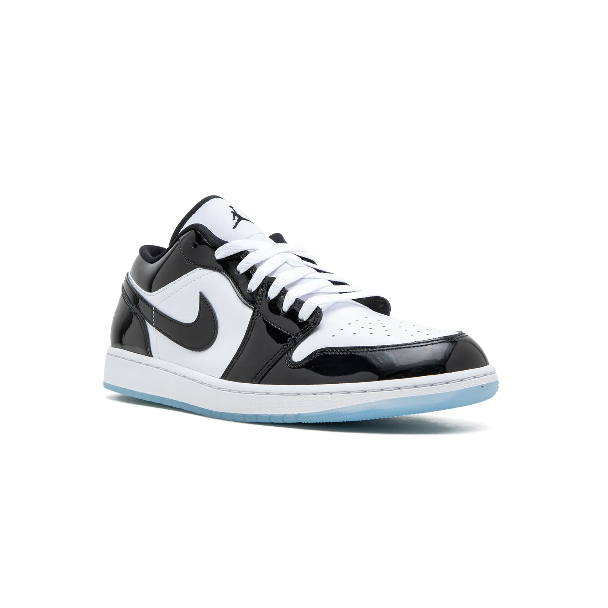 The Air Jordan 1 Low SE “Concord” is a colorway of the classic sneaker that is inspired by the popular Air Jordan 11 style of the same nickname. The Jordan 11 “Concord” is an original colorway in the Air Jordan line, and one of the most desirable sneakers in the world. Here, the Jordan 1 Low SE incorporates elements of the shoe into its design in a unique and appealing way. The upper features a white leather base with contrasting black patent leather on the overlay panels and Swoosh. “Wings” branding is embroidered on the heel. A black Jumpman appears on the tongue. The white rubber midsole and icy blue translucent outsole complete the look. Release date: January 17, 2023