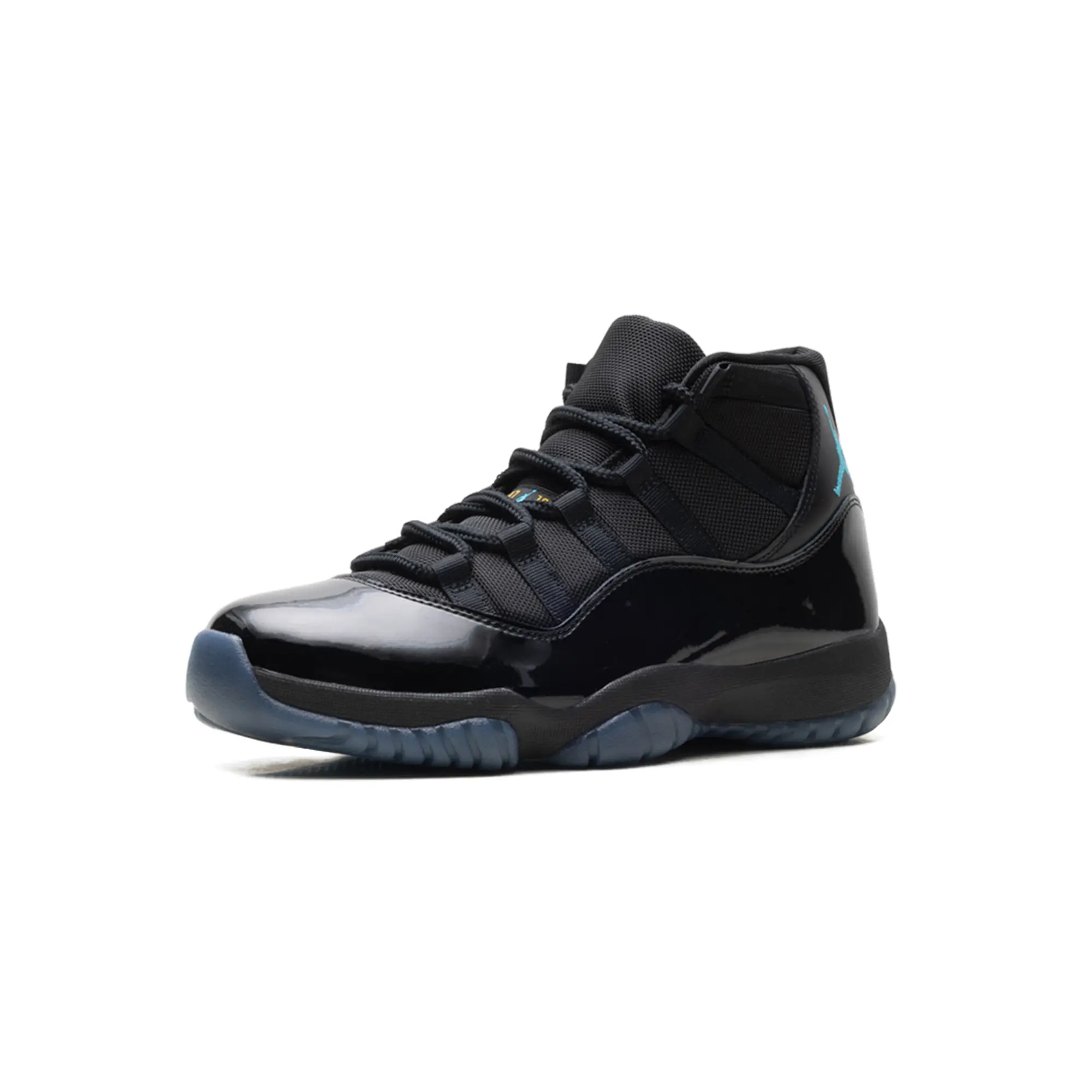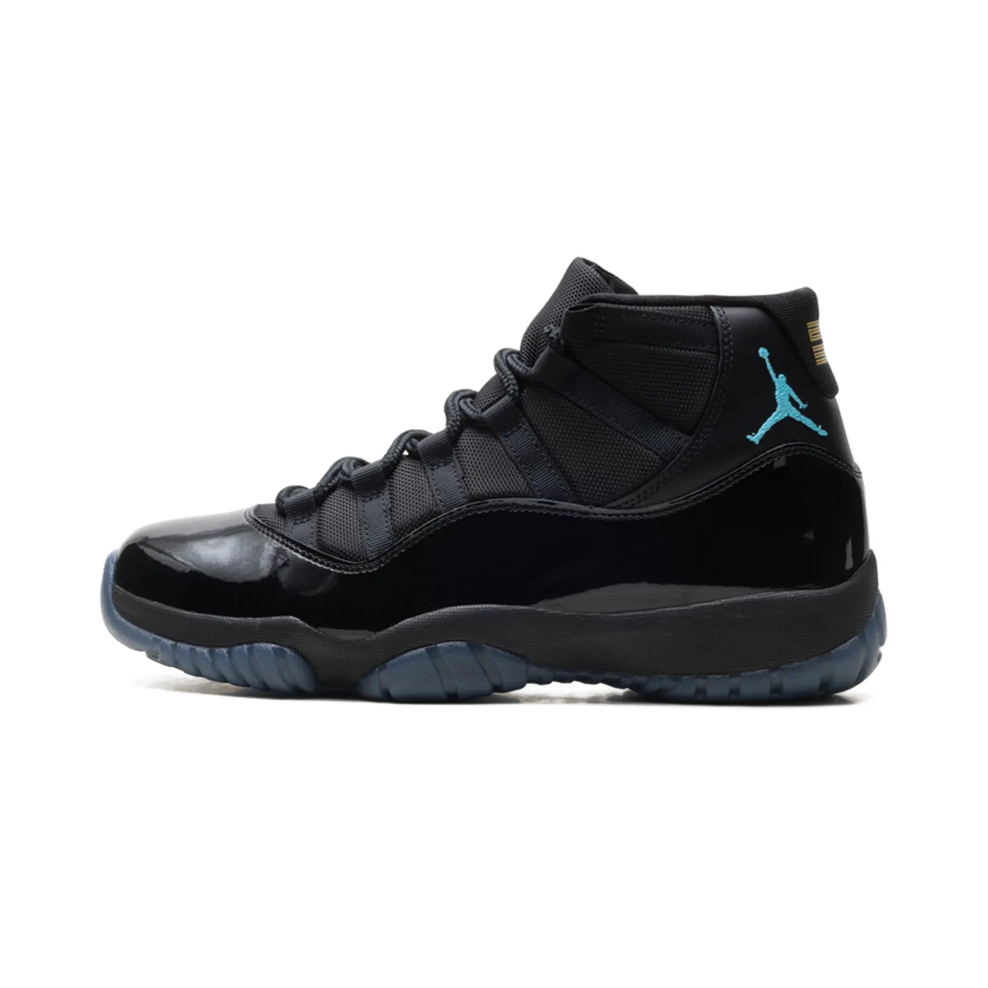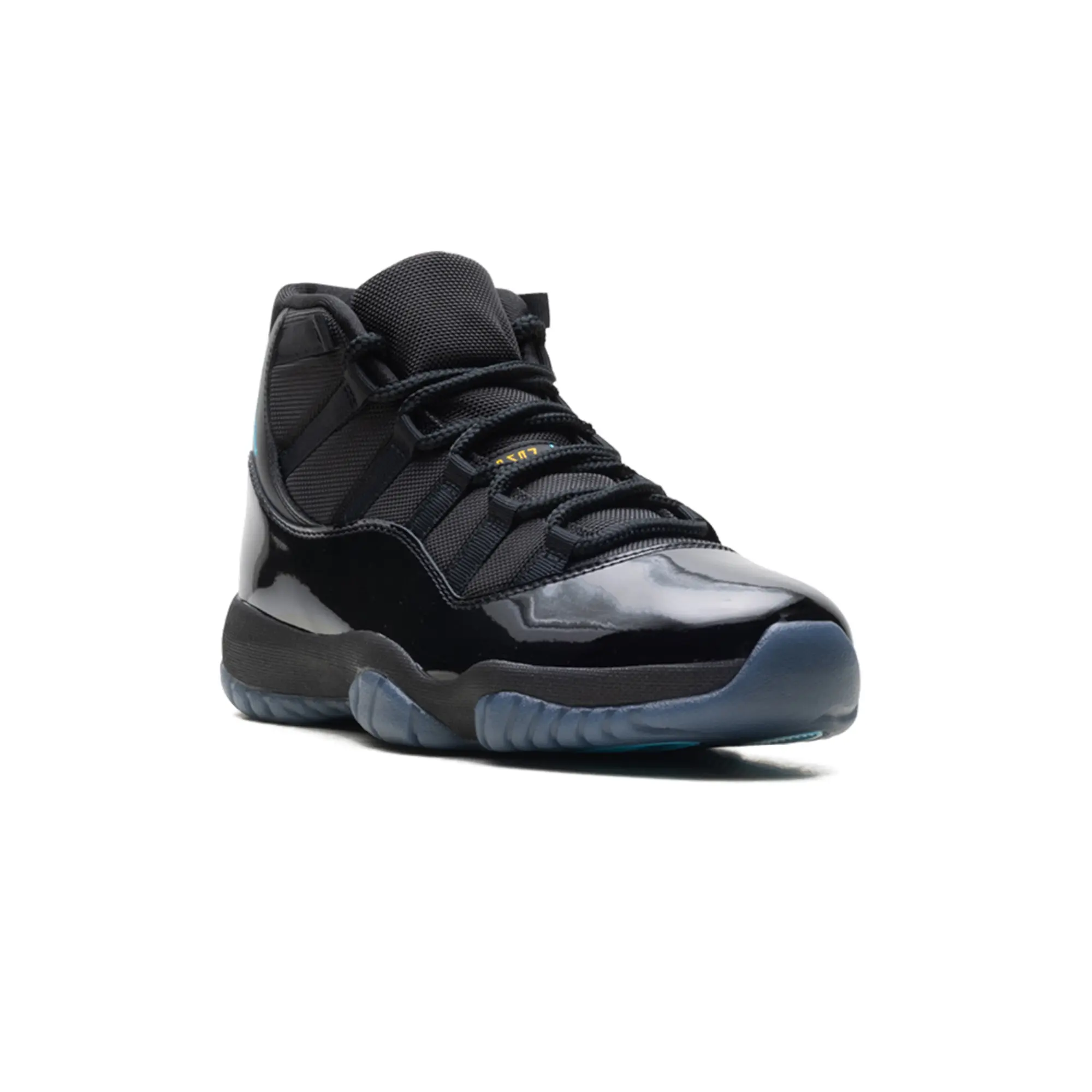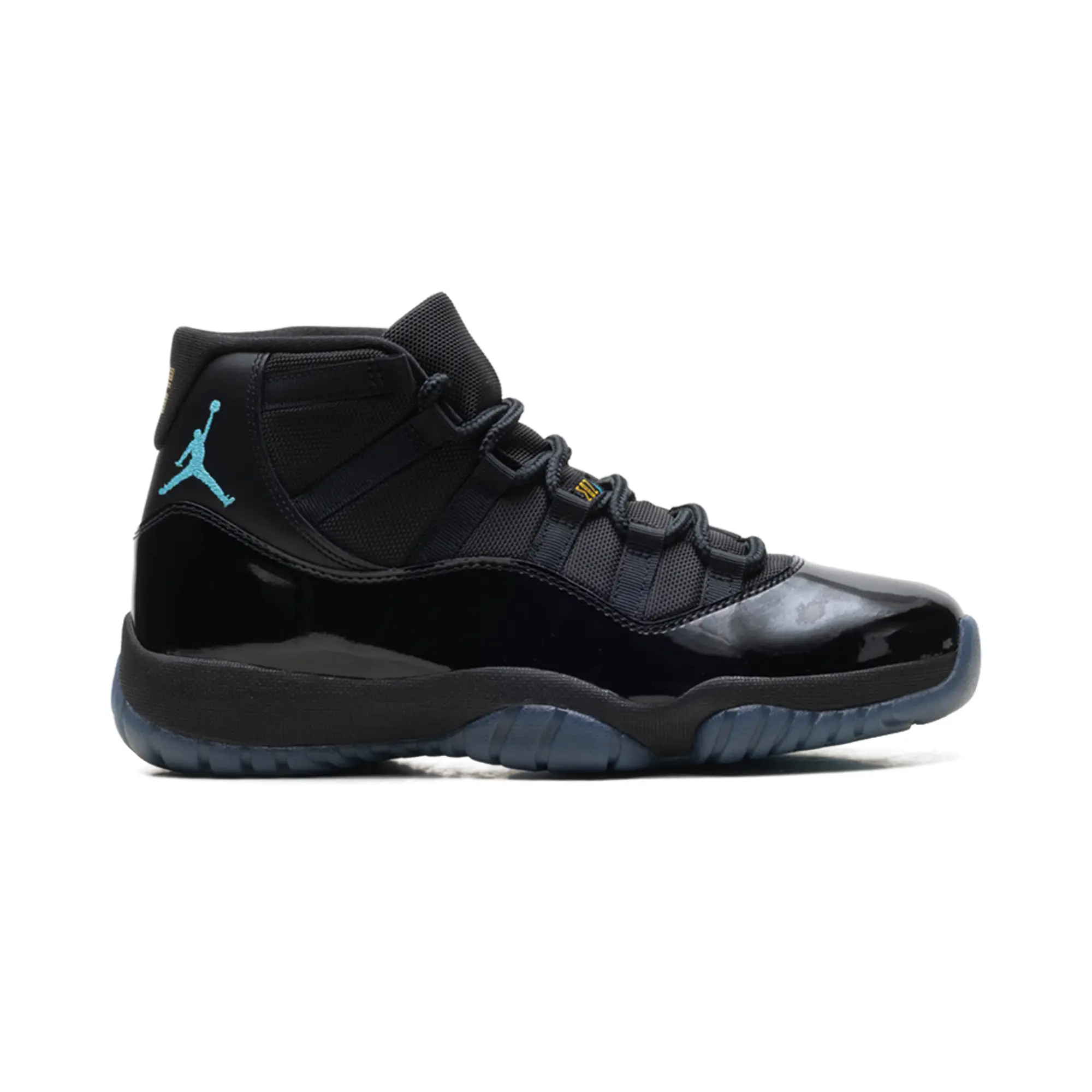 Command attention with the return of the Air Jordan 11 Retro "Gamma Blue". This fan-favorite sneaker features a sleek, sophisticated all-black ballistic mesh and premium patent leather upper. The bold design is dramatically punctuated by the signature Gamma Blue Jumpman and the striking Varsity Maize accents on the tongue and heel, creating a powerful, non-OG colorway that’s perfect for making a confident statement.