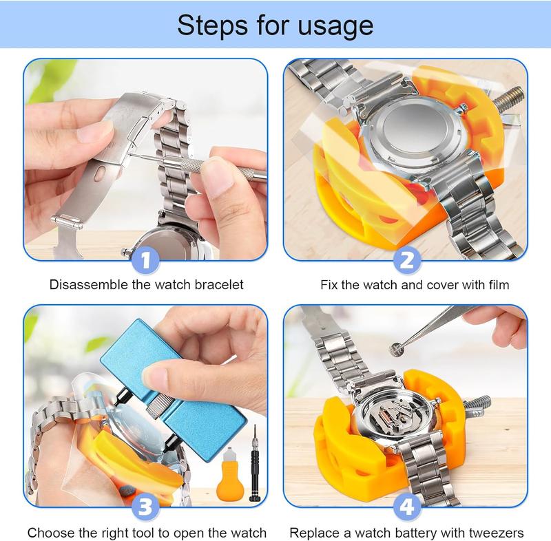 ·【Picture Operation Manual】-- The kit comes with a user manual(in English). The detailed pictures explain the correct usage method to you, avoid damaging your watch by wrong operation, and help you solve the watch problem at home.