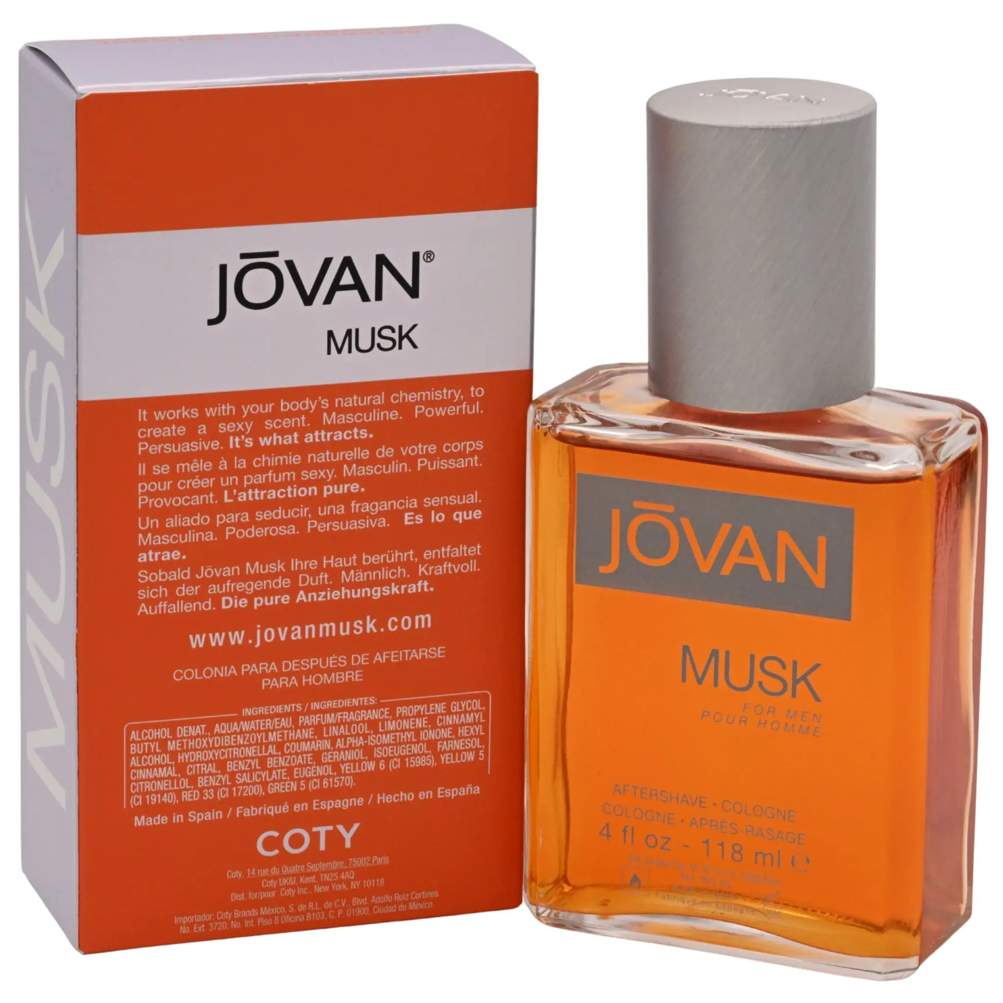 Jovan Musk for Men Aftershave Cologne, 4 fl oz. This cologne works with your body's natural chemistry to create a sexy scent. Masculine. Powerful. Persuasive. It's what attracts