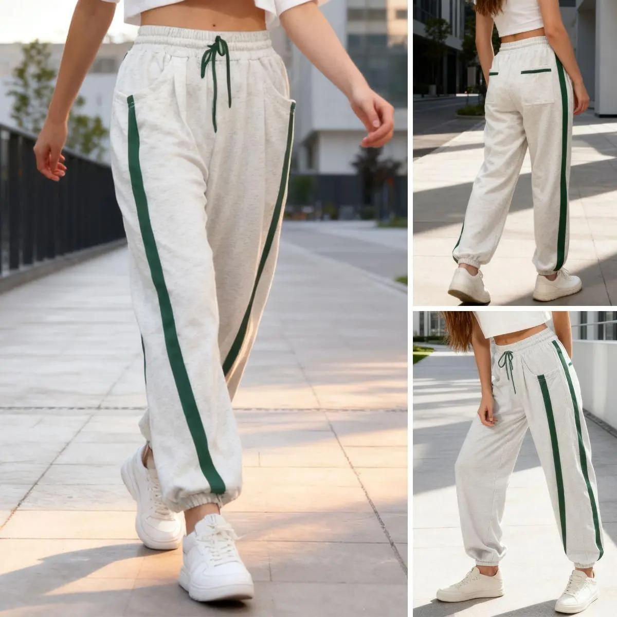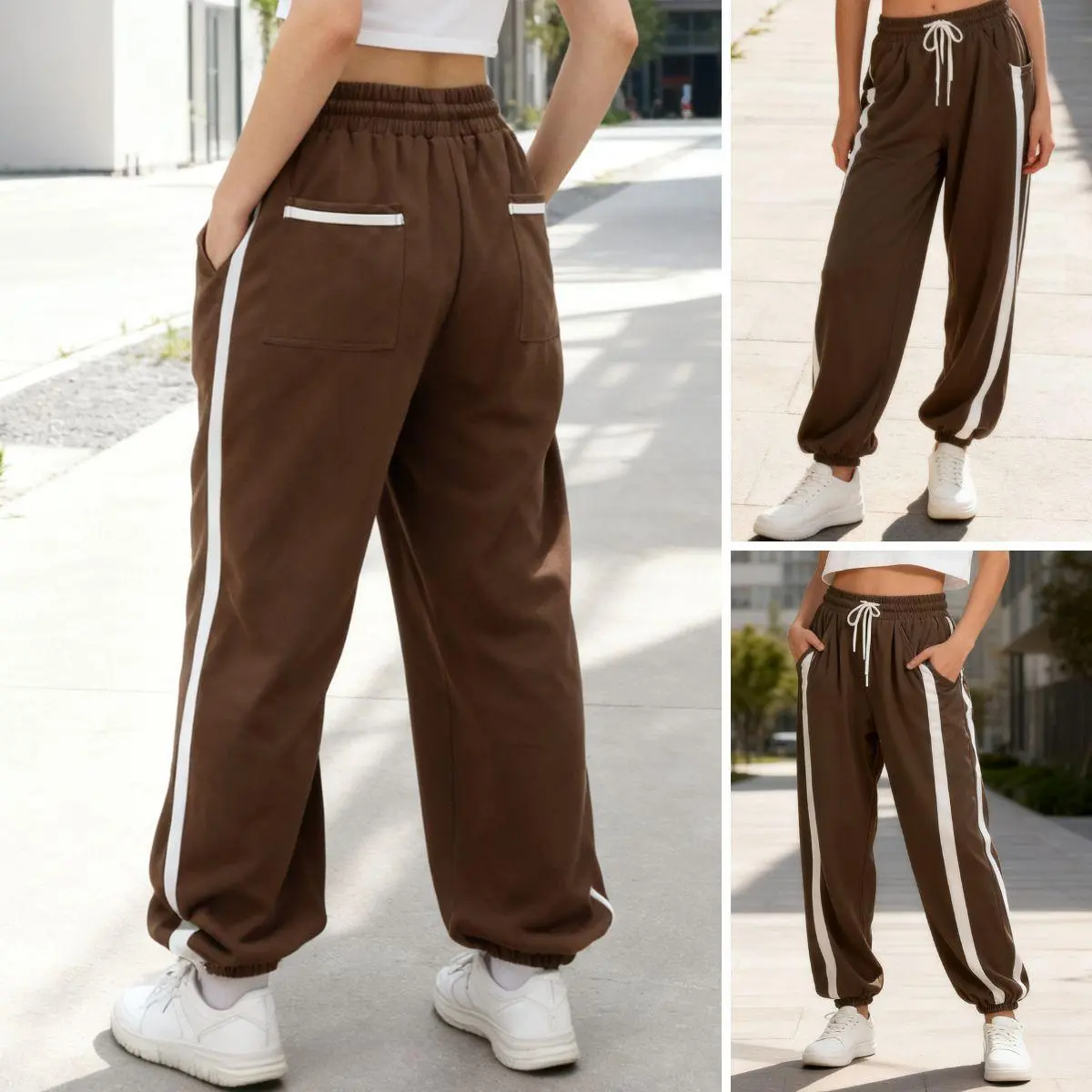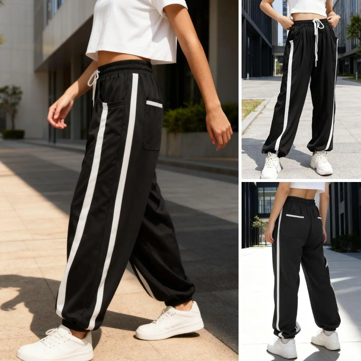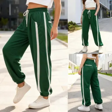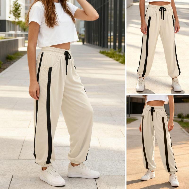 Feature : High-rise elastic waistband for a comfortable and snug fit. Baggy wide-leg design with contrast color accents adds a modern and edgy touch.