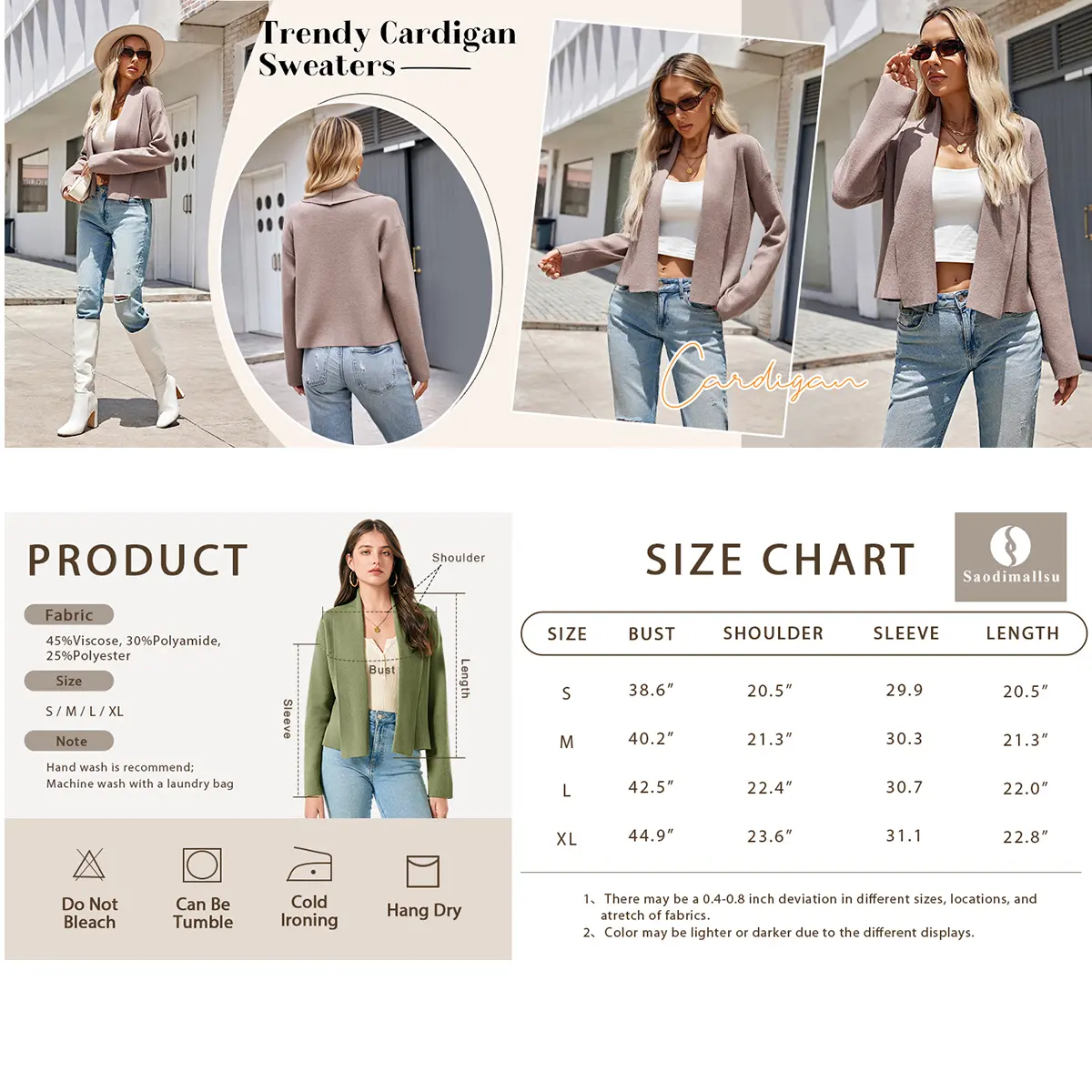 ·Material: 45%Viscose, 30%Polyamide, 25%Polyester. Made of high quality fabric, the fall cardigan is soft and comfortable to wear.