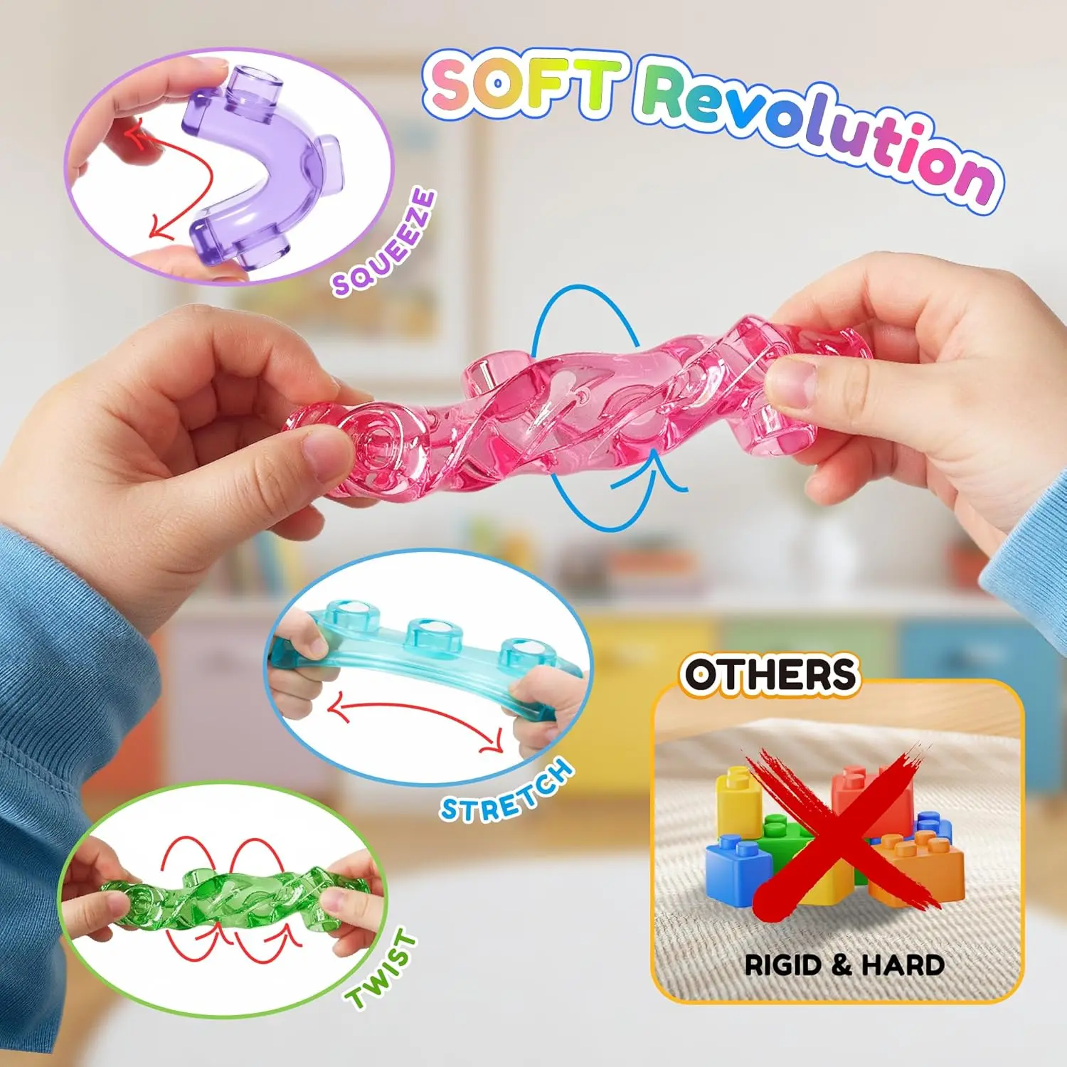 Safe Play for Tiny Hands - Crafted with toddlers in mind - Meets rigorous ASTM, CPSIA, and CPC safety standards - Made from thick rubber TPE, commonly used for baby toys - Perfectly sized for little hands to grip, connect, and explore safely - Smooth-fitting pieces with no sharp edges - Kids stay happily engaged while parents relax