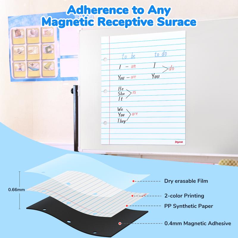 JoyCat magnetic lined paper can be widely applied for school, home, and office. It is classroom essentials for teachers, can be used for classroom demonstration, making lists, mathematics problems, science/lab projects, and even posting daily classroom schedules or rule.