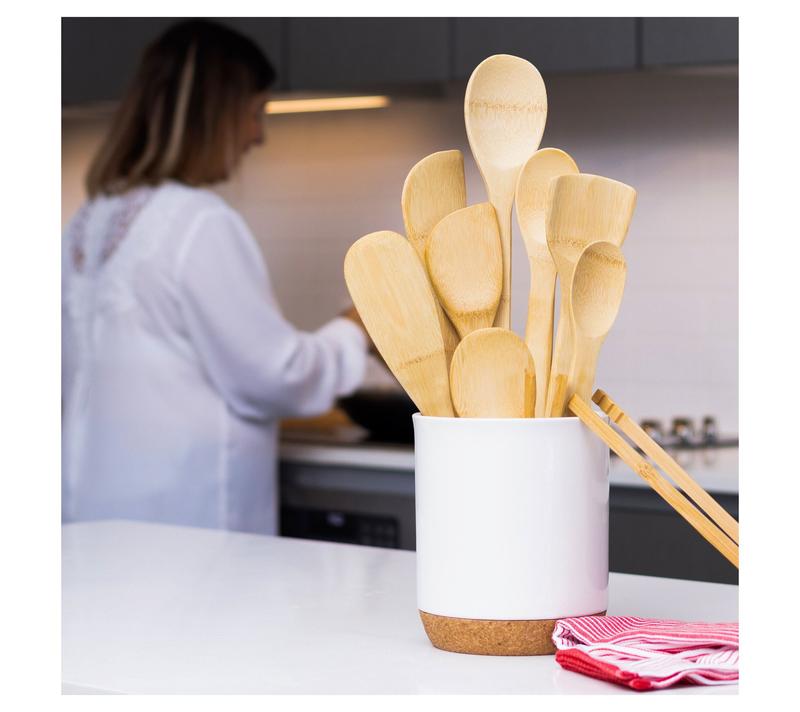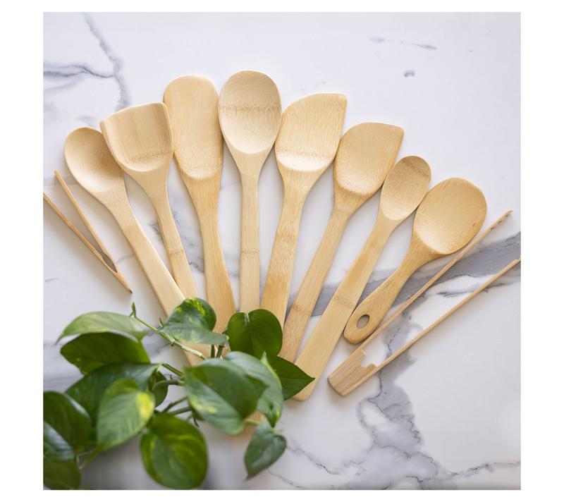 Whether you're stirring a simmering soup or flipping pancakes on a Saturday morning, this eleven-piece set equips your kitchen for every meal. The smooth, burnished bamboo feels comfortable in hand, offering the right tools for tossing, serving, and sauteing your favorite dishes while being gentle on cookware. Stack them in a canister or lay them out on the counter -- they're ready for busy weeknights or leisurely weekend brunches. From Joyce Chen.
