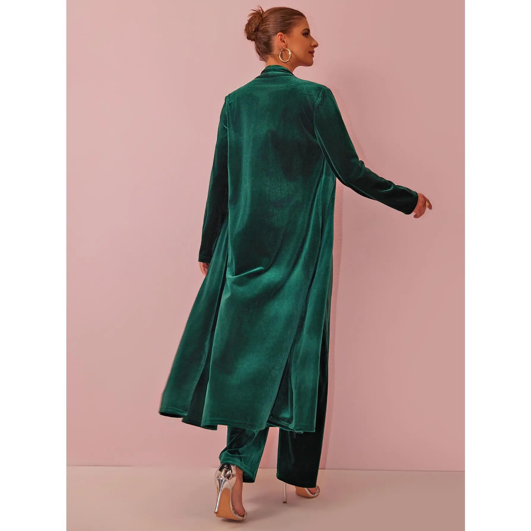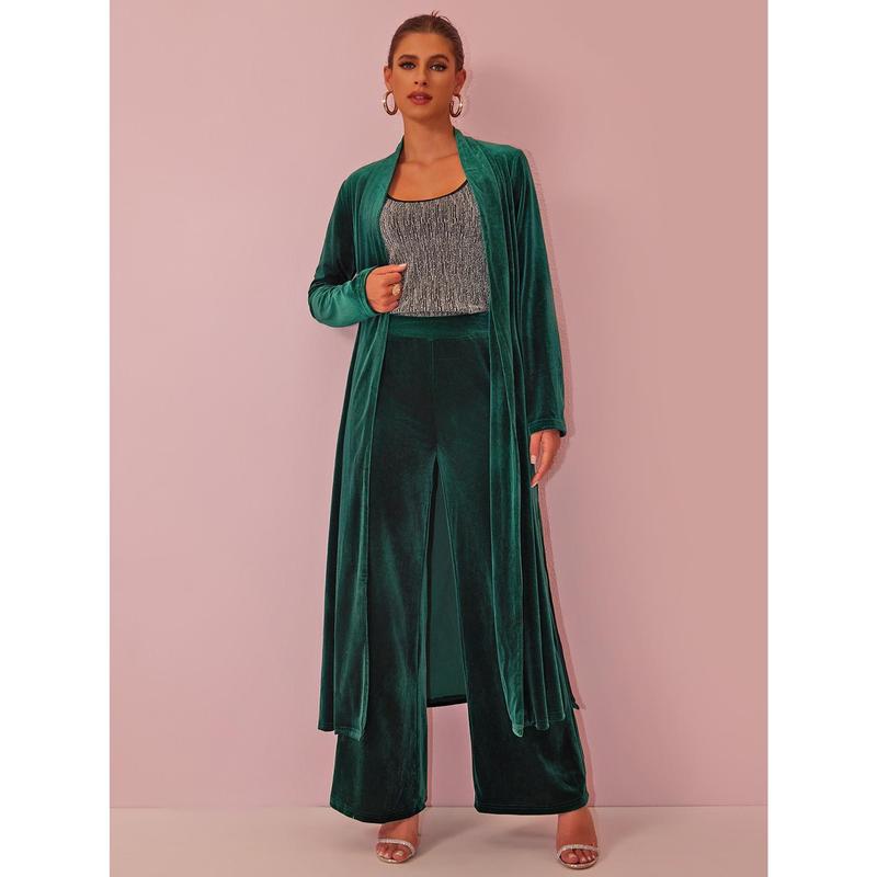 Step into luxury with our Velvet Long Cardigan & Wide - Leg Pants Co - ord Set. This set features a long, flowing velvet cardigan and matching wide - leg pants, perfect for creating a sophisticated and stylish outfit. Whether you're attending a special event, going for a night out, or simply want to elevate your everyday look, this velvet set is a perfect choice.