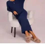 Top runs large. Comfortable maxi length skirt with waist tie . Pretty blue color