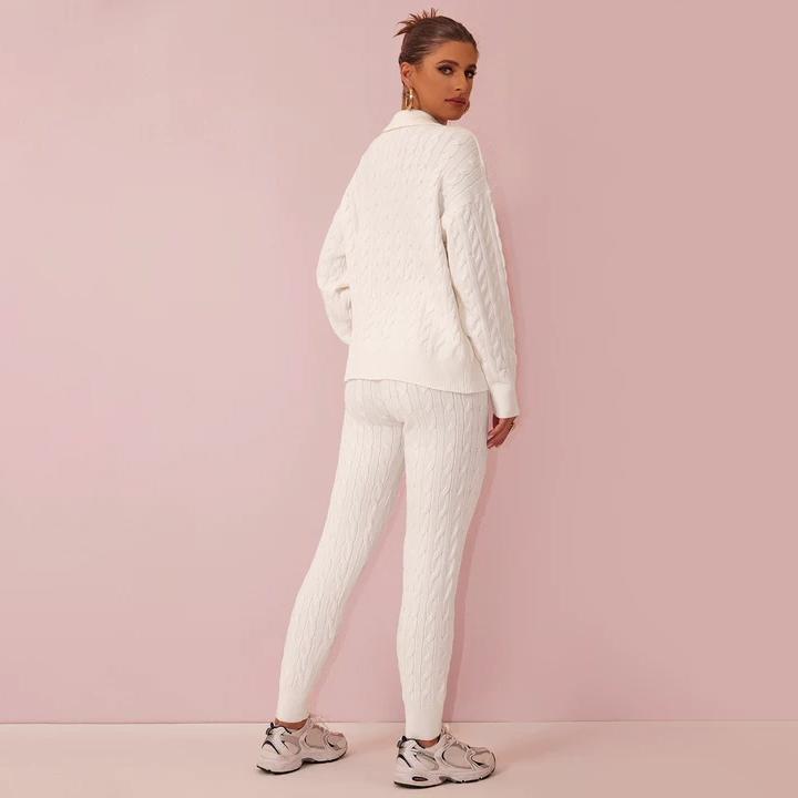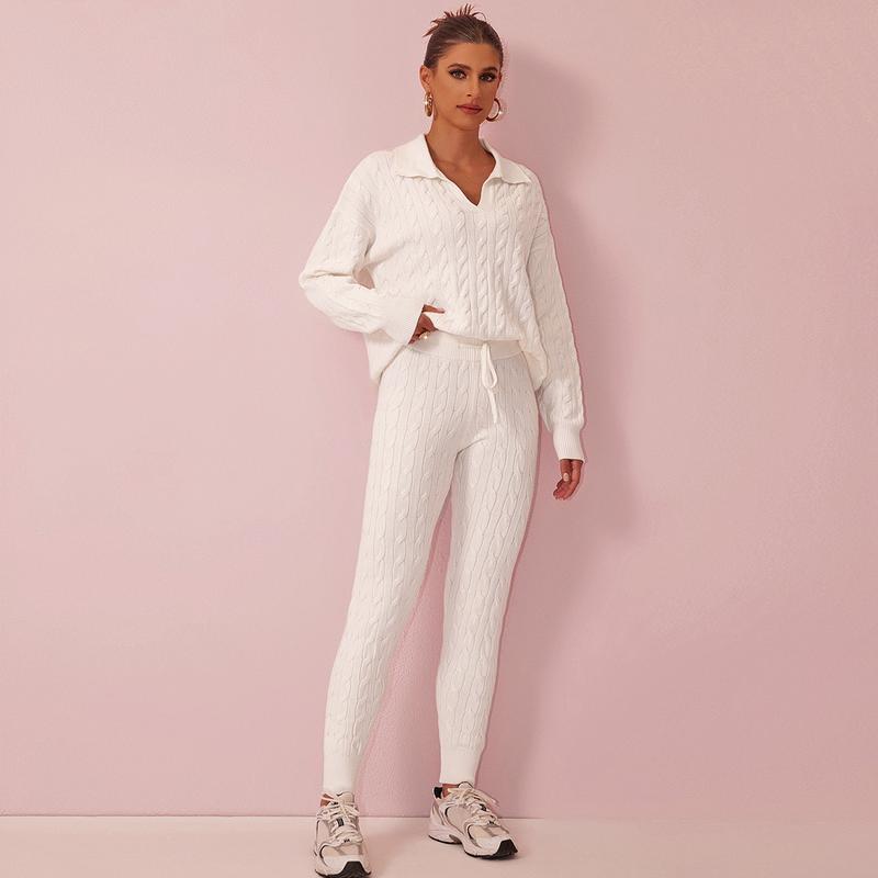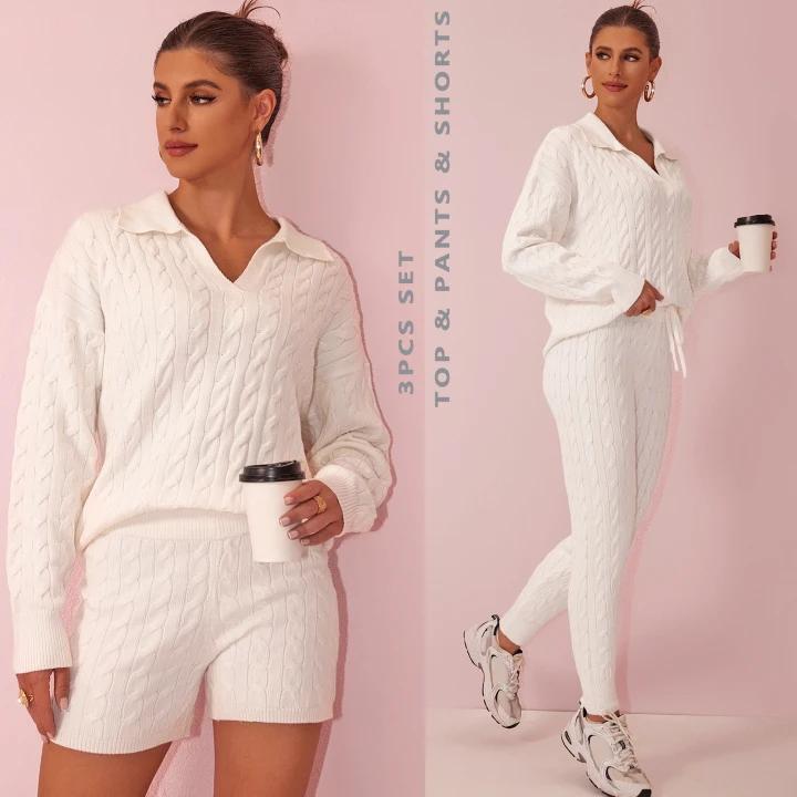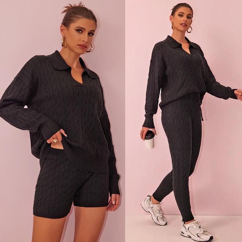 Indulge in comfort and style with our Cable Knit Polo Sweater and Shorts Set. This set features a classic cable - knit pattern, a polo collar on the sweater, and matching shorts. Ideal for creating a cozy and chic look, whether you're relaxing at home, running quick errands, or meeting friends for a casual coffee.