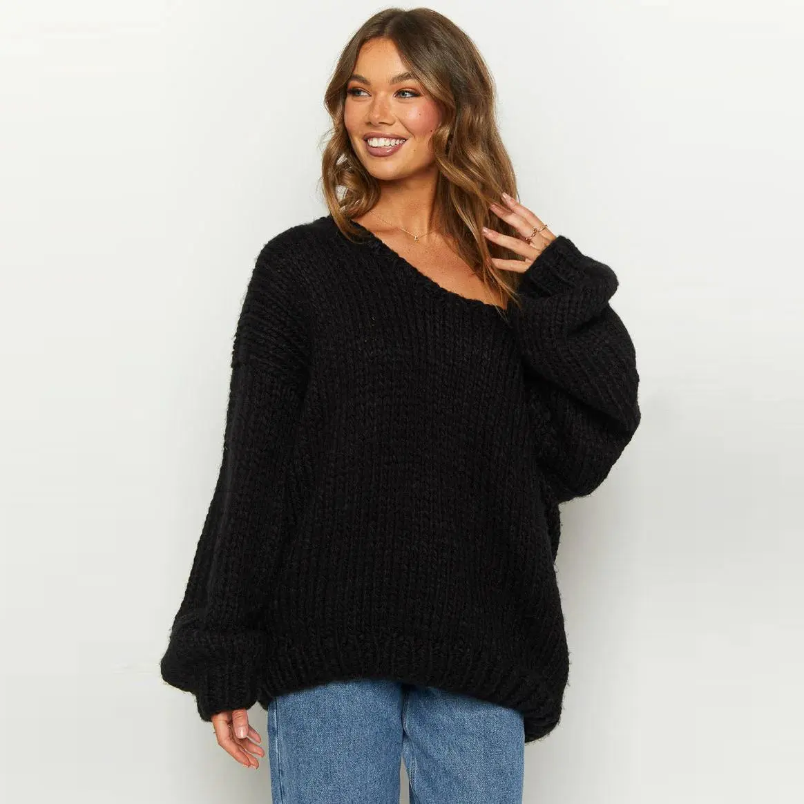 ·Oversized Design: This sweater features a loose fit, perfect for comfort and style. The chunky knit adds texture and warmth.