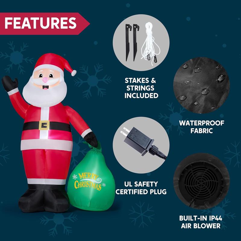 Whether it’s part of your outdoor Christmas decorations, front lawn scene, or family-friendly holiday display, this Santa decor is ready to bring fun and warmth wherever he’s placed. Great for Christmas inflatables lovers and festive Santa fans! 🎅