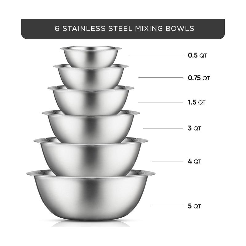 5. JoyJolt 6-Piece Stainless Steel Mixing Bowl Set