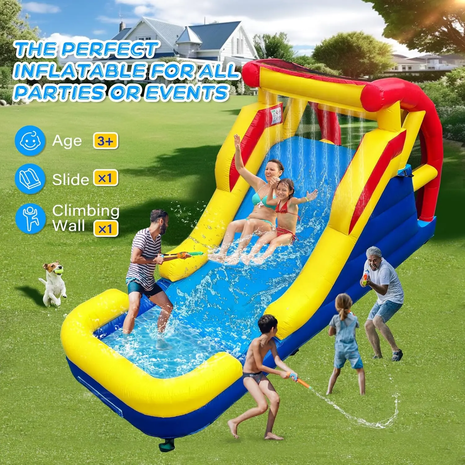 【BRING THE PARTY HOME】- Perfect for any occasion such as birthday parties, celebrations, daycare, family gatherings, or as a party rental. This backyard water park is everything you need for endless fun and entertainment in the comfort of your own home!