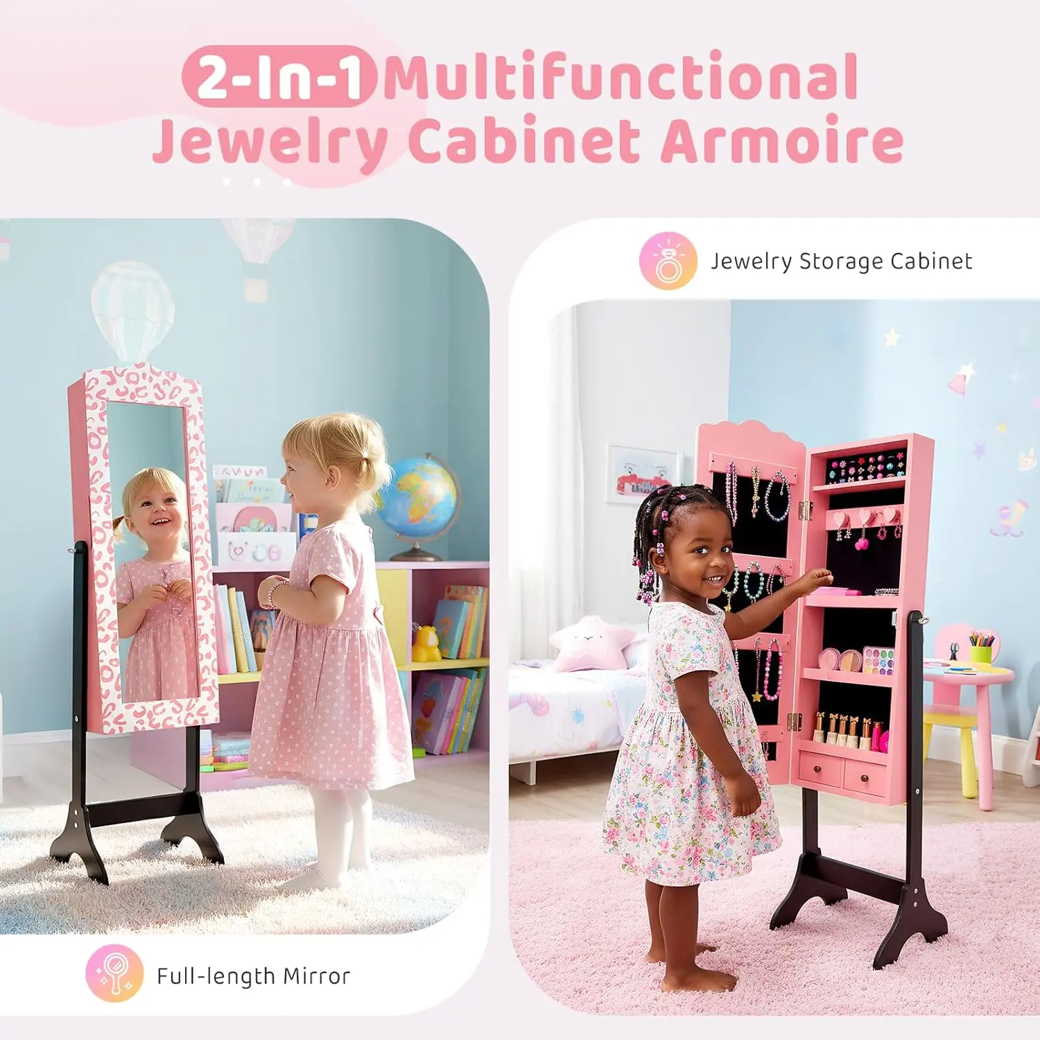 JOYMOR Kids Jewelry Cabinet, Leopard Print Jewelry Box for Girls with Full-Length Mirror, Kids Jewelry Armoire with Storage Drawers (Pink)JOYMOR Kids Jewelry Cabinet, Leopard Print Jewelry Box for Girls with Full-Length Mirror, Kids Jewelry Armoire with Storage Drawers (Pink)JOYMOR Kids Jewelry Cabinet, Leopard Print Jewelry Box for Girls with Full-Length Mirror, Kids Jewelry Armoire with Storage Drawers (Pink)JOYMOR Kids Jewelry Cabinet, Leopard Print Jewelry Box for Girls with Full-Length Mirror, Kids Jewelry Armoire with Storage Drawers (Pink)