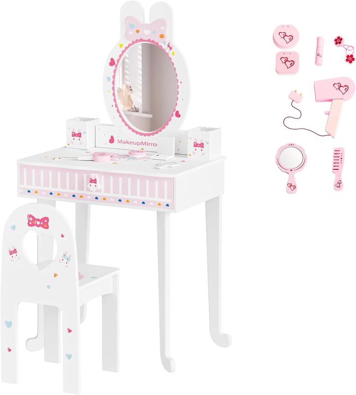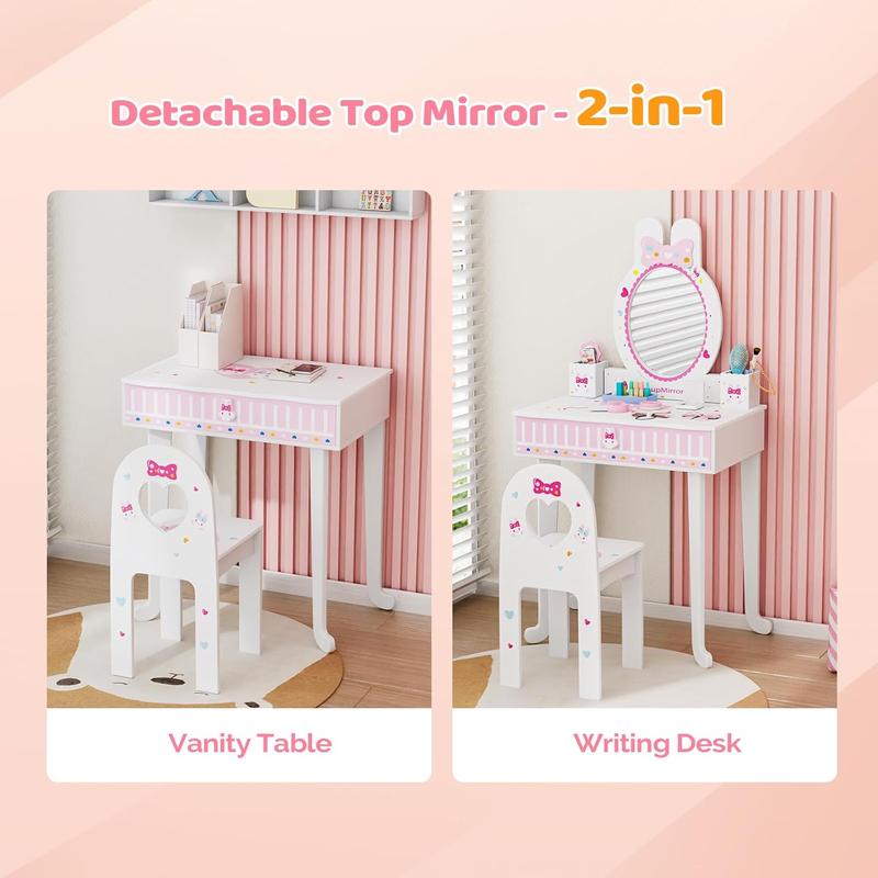 【MULTI-FUNCTIONAL】- 2-in-1 Design, features a detachable top that easily converts from a vanity with mirror to a writing desk, enjoy the benefits of two products in one! This multifunctional design enhances playtime and practicality, making it easy to switch between activities seamlessly.