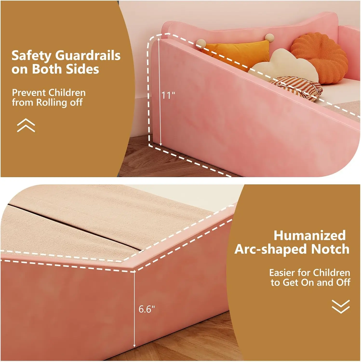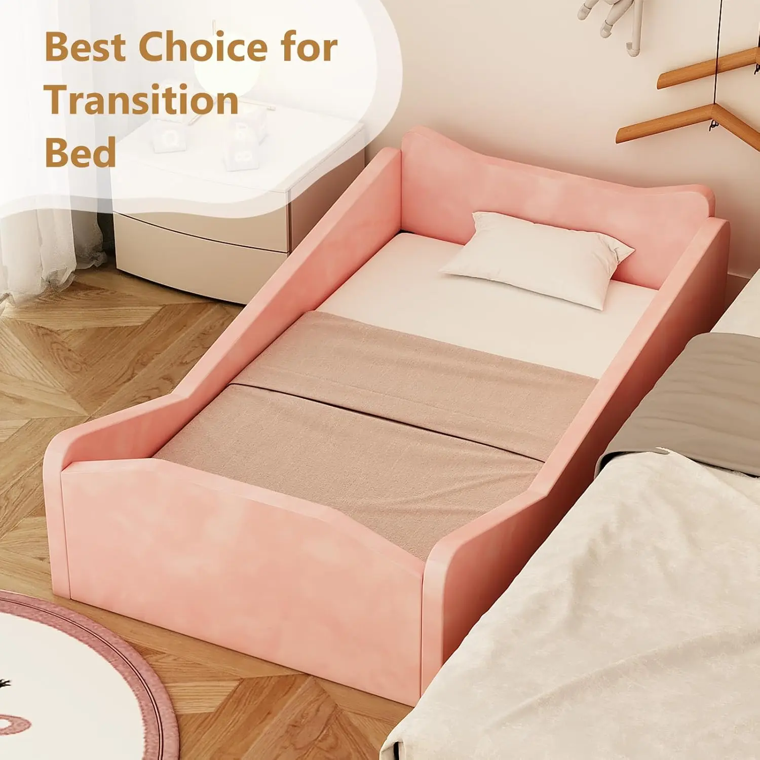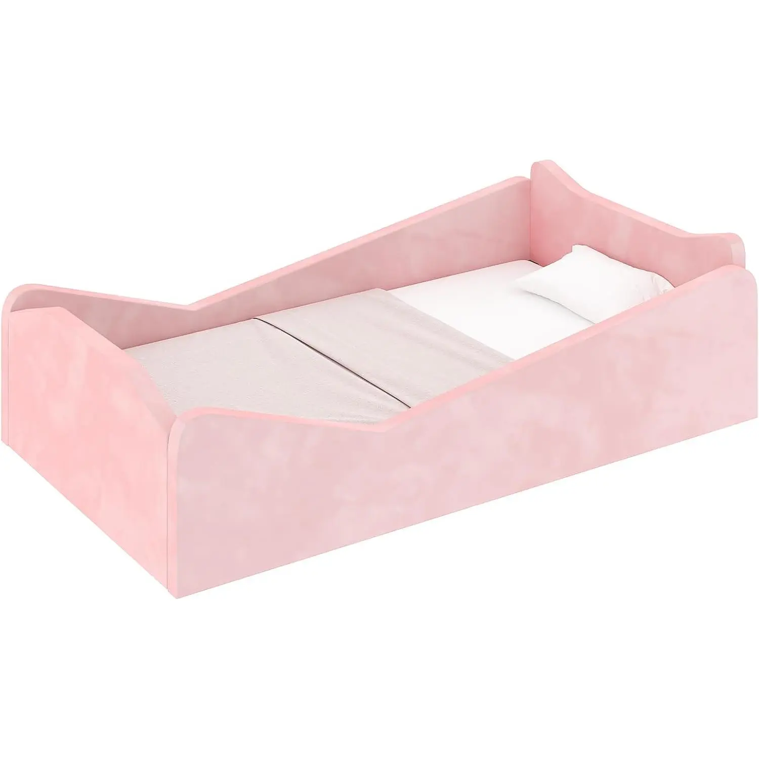 JOYMOR Toddler Bed, Floor Bed with Safety Guadrail, Montessori Toddler Bed with Animal Ear Shapes, Soft Velvet Wood Bed for Infant, Kids, Mattress not IncludedJOYMOR Toddler Bed, Floor Bed with Safety Guadrail, Montessori Toddler Bed with Animal Ear Shapes, Soft Velvet Wood Bed for Infant, Kids, Mattress not Included