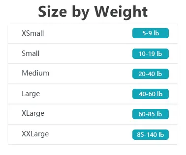 ·L (Large): For dogs 40-60 lbs, chest size 28-33". Suitable for Australian Shepherds, Basset Hounds, and Standard Poodles.