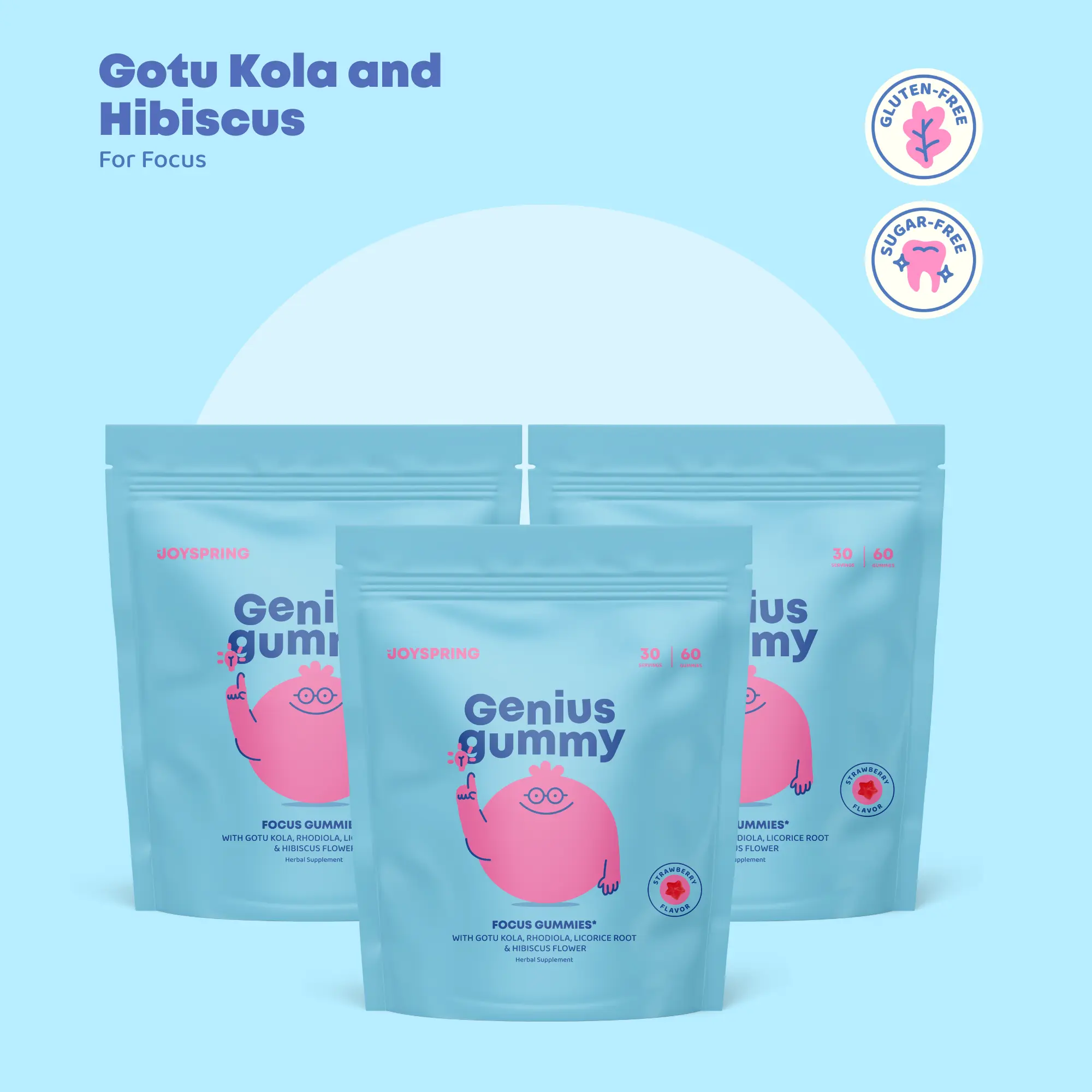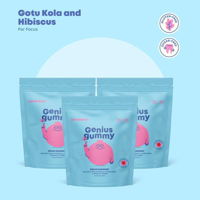 JoySpring Genius Gummies – Focus Gummies for a Calmer & More Focused Mind - 3 Pack