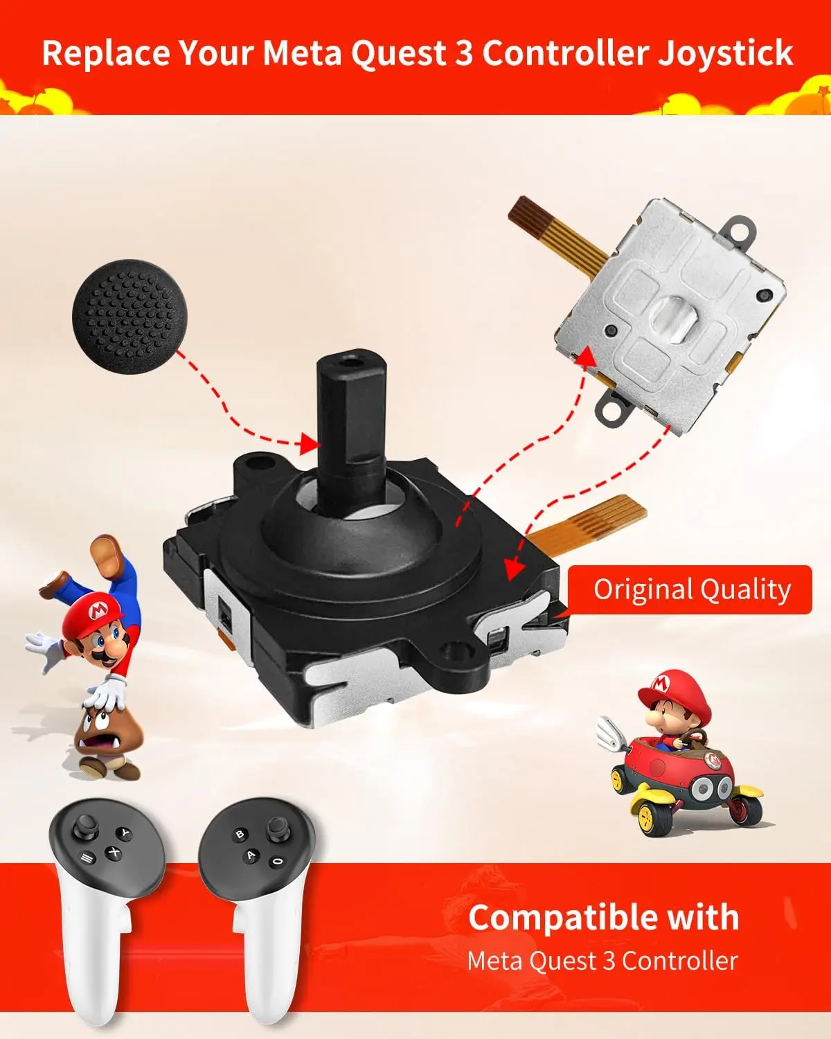 【2 × 3D Left/Right Thumb Sticks + 4 × Thumbstick Caps】Perfect replacement analog joysticks for oculus quest 2 controller and quest 3 controller, work for left and right oculus quest 2/3 controller, repair your worn-out, damaged and drift analog joystick. The thumb stick caps can protect your joystick from scratches, corrosion, spallingor other damage. It made of high-quality silicone material, very safe, soft and comfortable.