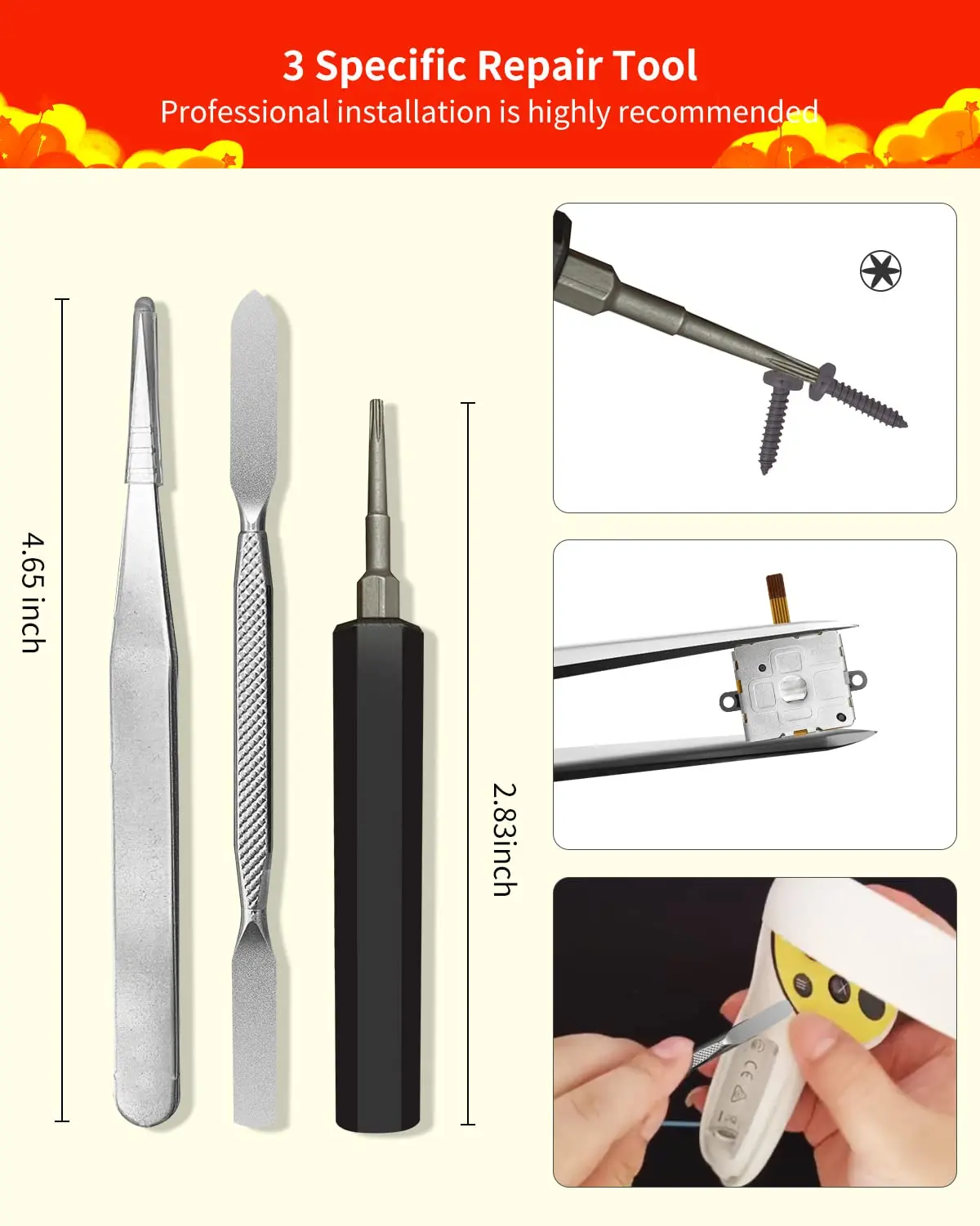 【Complete Repair Kit】Package include –2 x Replacement joystick, 4 x Thumb Stick Caps, 1 × Tweezer, Pry Tool, 1 × Metal Pad Tool, 1 x T5 Screwdriver, 1 x T5 Small Screwdriver.