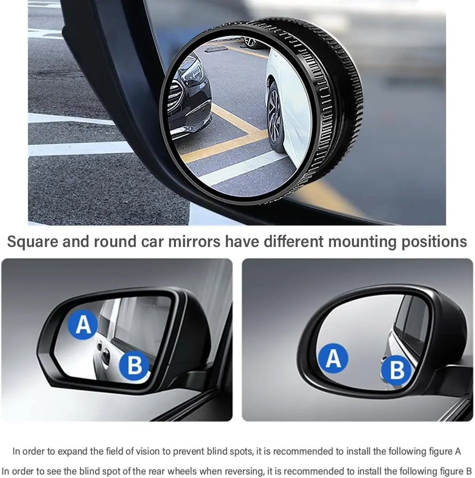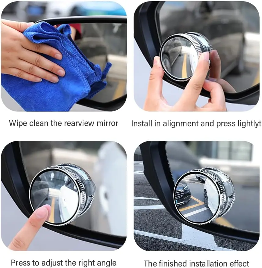 • 2pcs Car Blind Spot Mirror: This set includes two rearview mirrors, perfect for expanding your view. Ideal for safer driving, these mirrors help reduce blind spots.