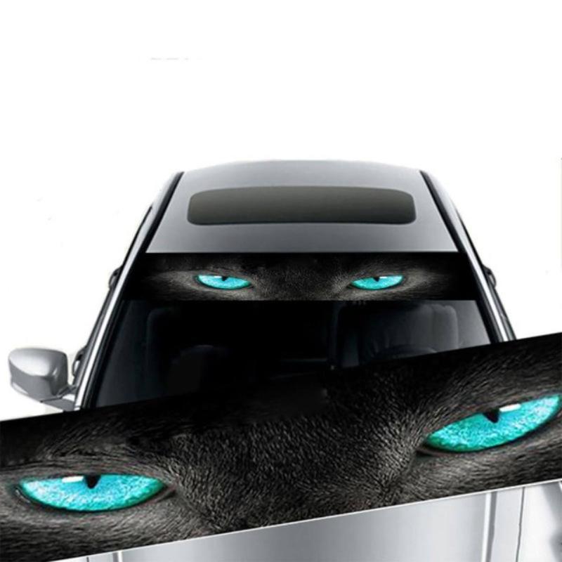 Joytutus Car Sunshade Stickers Auto Front Windshield 3D Vinyl Film with Ghost & Wolf Eyes Design Blue Glitter UV Protection Decorative Decal