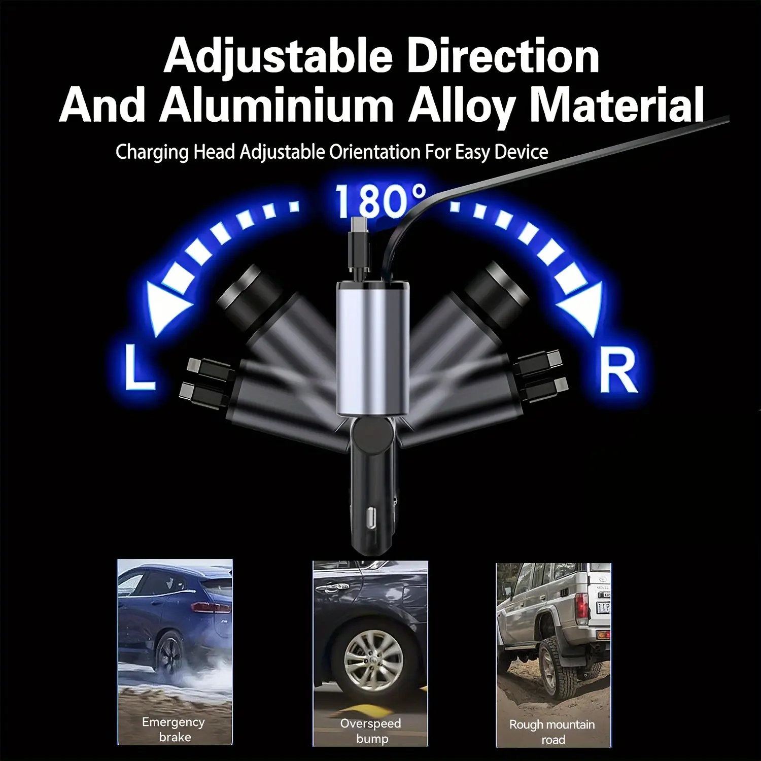 The charging interface rotates 180 degrees, adapting to various angles. Even on bumpy roads, it stays firmly in place and won't fall off. This thoughtful design ensures stability and ease of use.