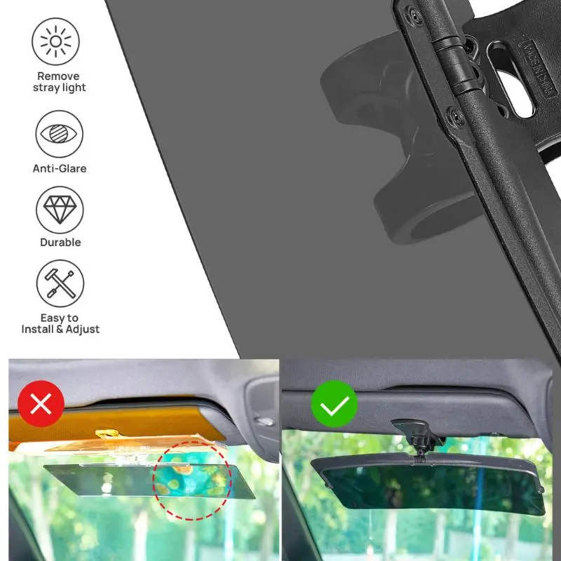The visor features a block light barrier to prevent sunlight from irradiating your eyes through gaps. This enhances driving safety. It's designed for most cars, fitting perfectly without moving or falling off during use. Quick installation in just 5 seconds. Ideal for summer, it blocks the sun to protect your eyes. In winter, it reduces snow blindness for safer driving.