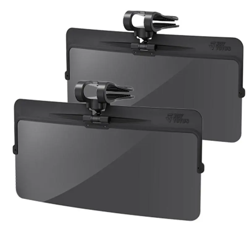 The JOYTUTUS polarized sun visor shields your eyes like sunglasses. Its polarizing plate eliminates glare, providing clear vision. It reduces eye fatigue, making the visual environment soft and comfortable. This patented design ensures your safety while driving. Polarized car visor lens size: 12.6 inch (L) * 5 inch (W). Block light barrier length: 1.3 inch.