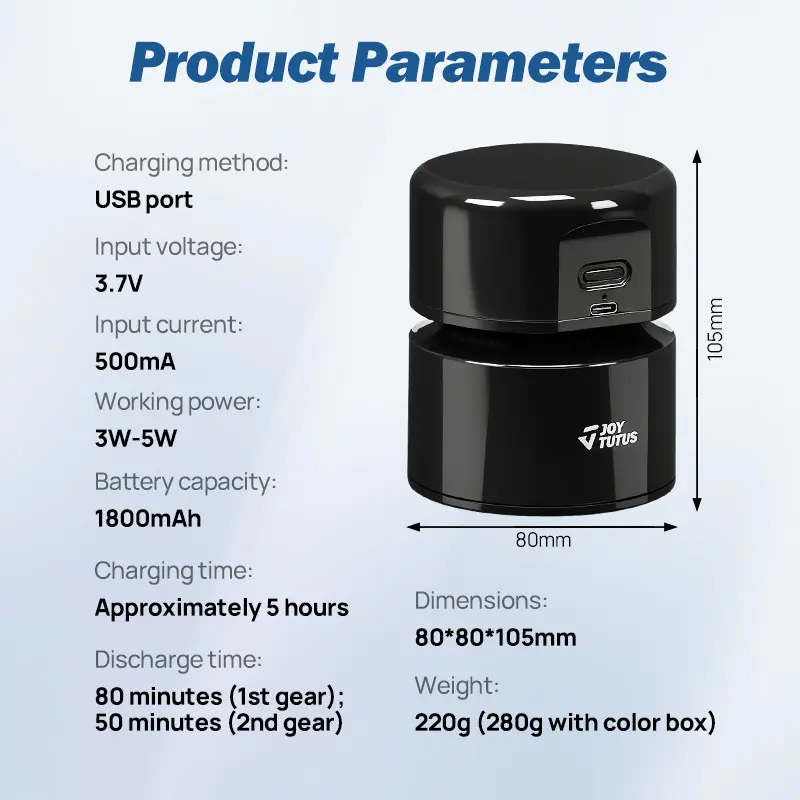 The JOYTUTUS Mini Desktop Vacuum Cleaner is a handheld USB wireless cleaner. It's perfect for car seats, keyboards, crumbs, hair, ashes, and home use. This portable plastic cleaner offers a compact and versatile design. It's ideal for various cleaning needs. 🚗💻
