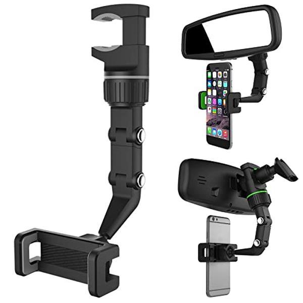 Joytutus Rearview Mirror Phone Holder 360° Rotatable & Retractable Car Mount for All Cars Multifunctional Universal Fit Hands-Free Driving Enhance Visibility